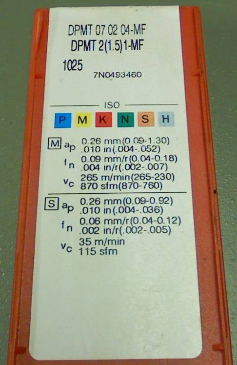 а вот у сандвика рекомендованная глубина резания при том же радиусе 0,26мм, но при этом диапазон допустимых от 0,09мм до 1,3мм... заметьте - и рекомендованый и минимально допустимый, при котором производитель гарантирует работу стружколома - значительно меньше радиуса пластины..