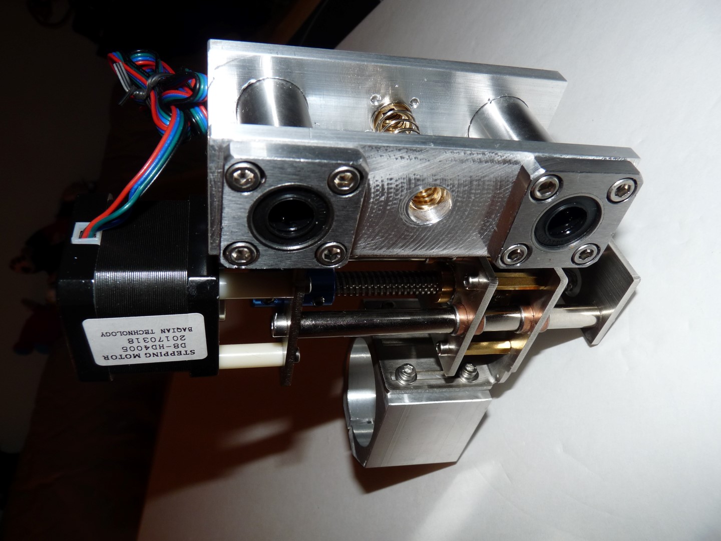 и наверное стоило крепление шагового двигателя пустить через опору с радиально-упорным подшипником, поскольку сейчас вся осевая нагрузка ложится на подшипники шаговика, что не есть гуд.