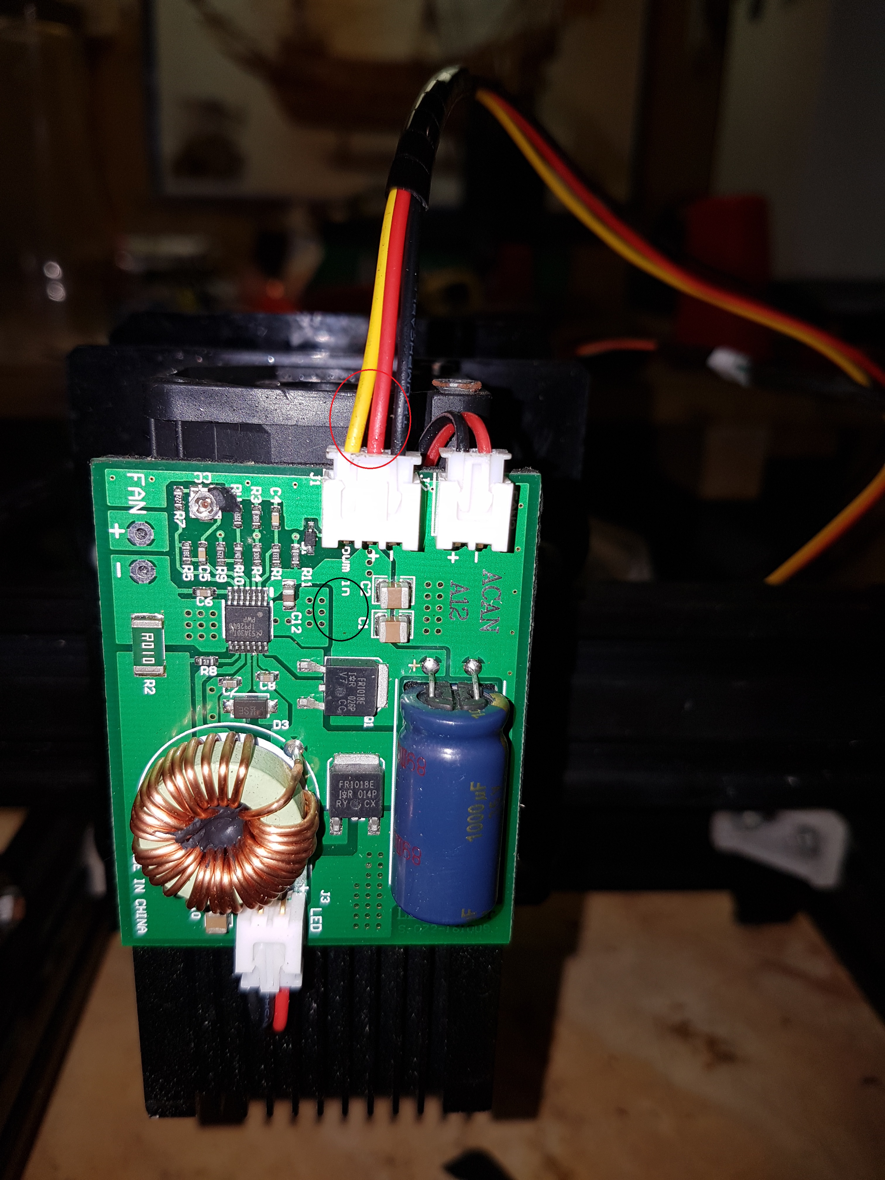 [/attachment]Имеется такой контроллер , с выходом на лазер два провода! На лазерном модуле - три провода! Как их подружить?