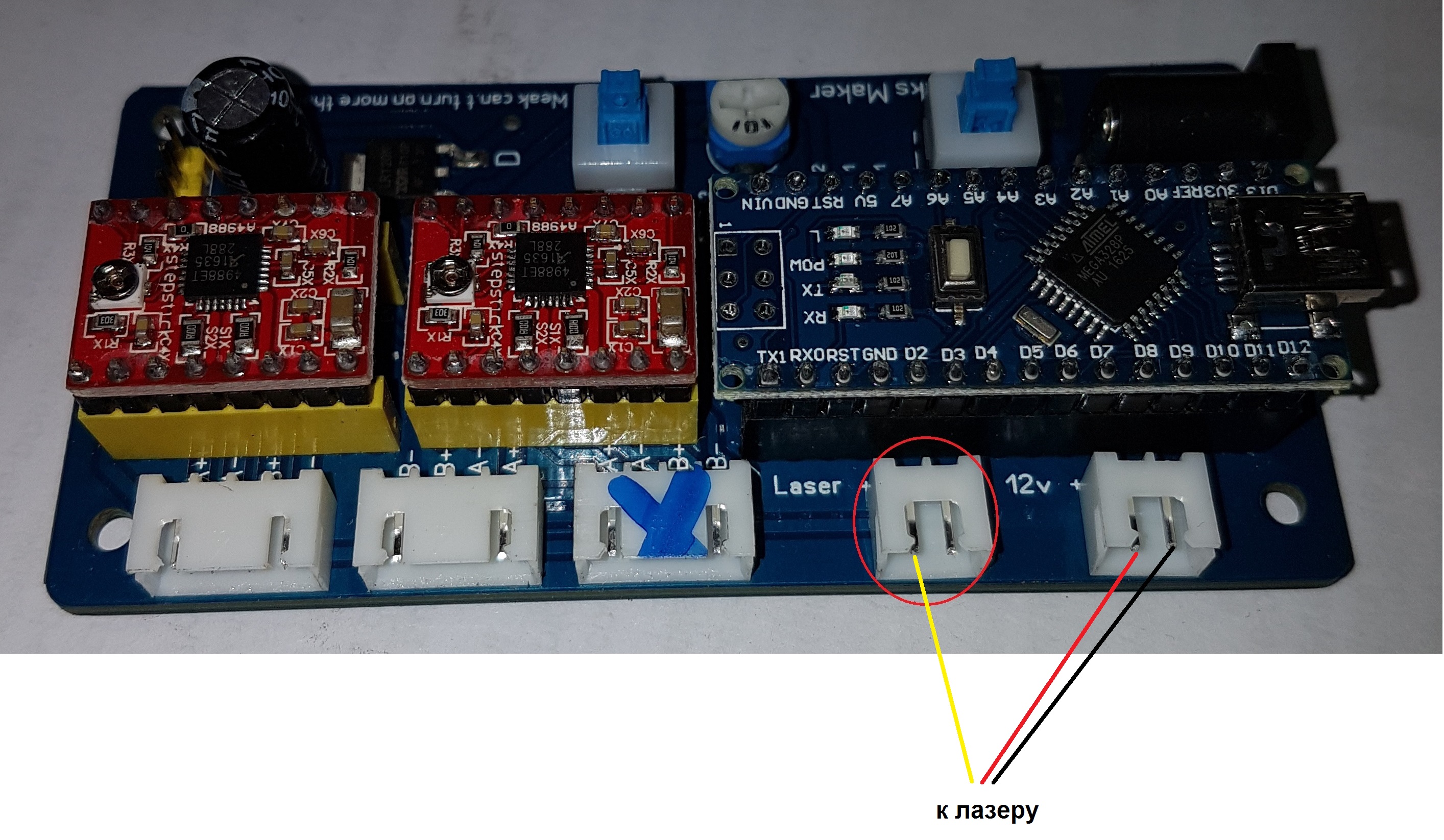 Спасибо!!!Rom327 писал(а):Продублирую твои фотографииbaton171 писал(а):Имеется такой контроллер , с выходом на лазер два провода! На лазерном модуле - три провода! Как их подружить?