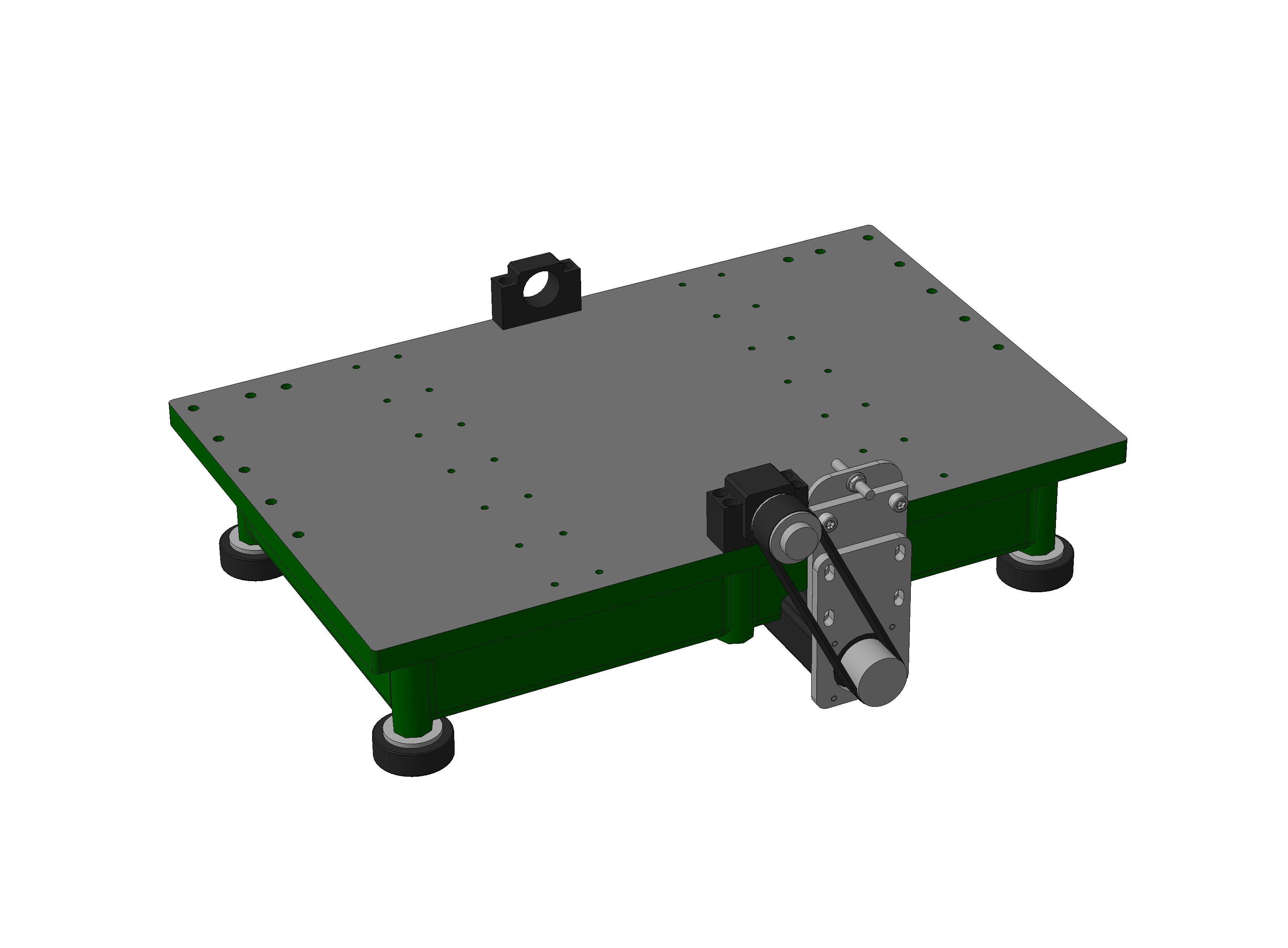 В очередной раз убедился, что в проектировании станка нет маловажных моментов, сборки нужно производить очень дотошно. Очередной пример этому, натянул ремень на шкивы, и понял что последний будет пересекать болты, хотя мне уже и думалось что можно изготавливать этот кронштейн. К тому же количество зубьев шкива пришлось снизить до 24х иначе он не входит под стол, что тянет за собой подъем ленты, увеличение пропилов под боковины, и необходимость делать углубление под заход шкива в плиту.
