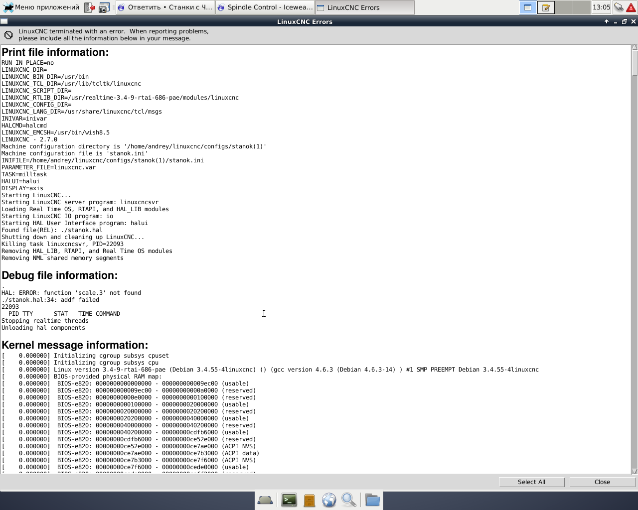 Вот так запускается ЦНЦ. Но шпиндель, сука, не работает. В халметре параметры меняются при изменении направления вращения и скорости, но на выходе управления тишина, 0В. Замерял тестером.