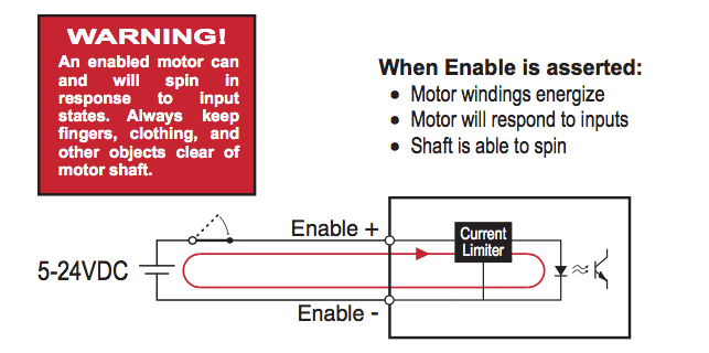 Smlua писал(а):Планиру ставить серводвигатели с интегрированными драйверами, там есть в инструкции схема подключения сигнала Enable, которая работает аналогично сигналу servo ON, насколько я смог разобраться со своими скудными познаниями в электронике. Тоесть на Enable нужно подать напряжение 5-24в чтоб включить обмотки (схему прилагаю). Вопрос в следующем, подключать нужно согласно схеме в Вашей инструкции, либо можно подключить к реле на плате через отдельный блок или еще как-то можно, подскажите как правильнее.