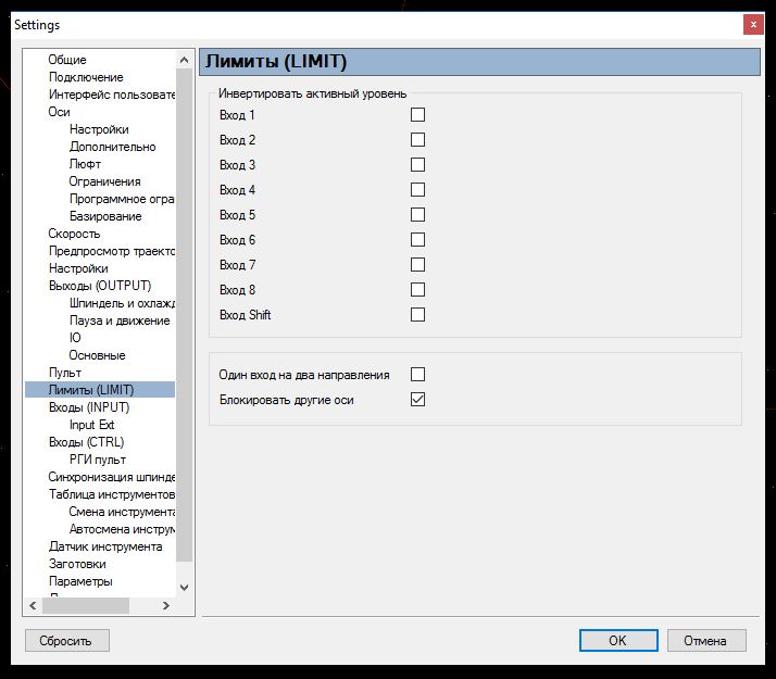 Кажется наконец немного разобрался с концевиками. Во первых нужно поставить галку в настройках лимитов "Один на два положения".