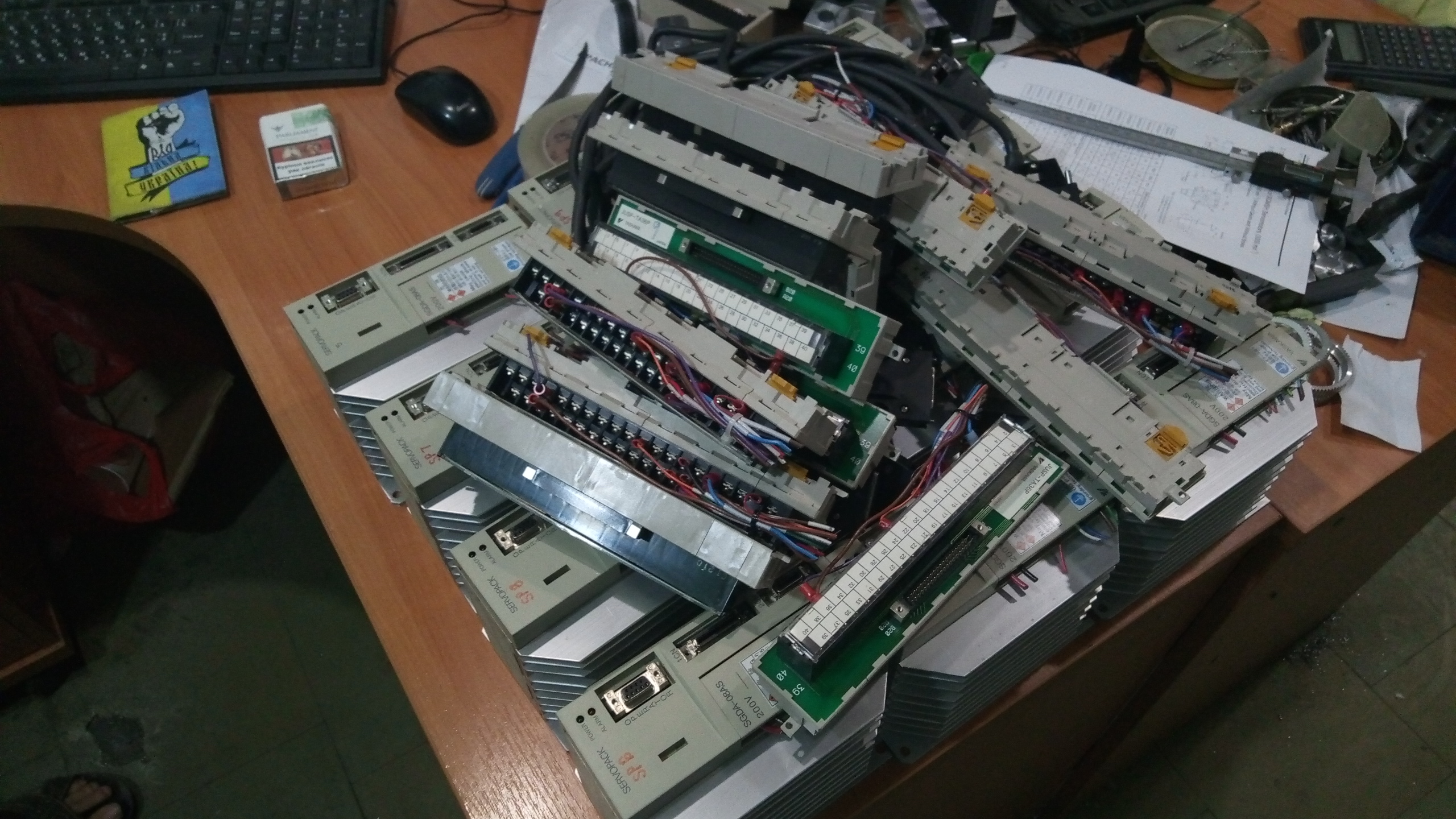 Пачка драйверов с терминальными платами и кабелями, чуток движков с редукторами передаточное 5.