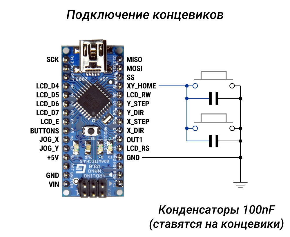 ALViktor писал(а):Двигает сначала одну ось, концевик сработал, потом эту же ось до момента отпускания концевика.DobriyKit писал(а):Концевики параллельно включены. Сигнал уже пришел. Все "Home"?