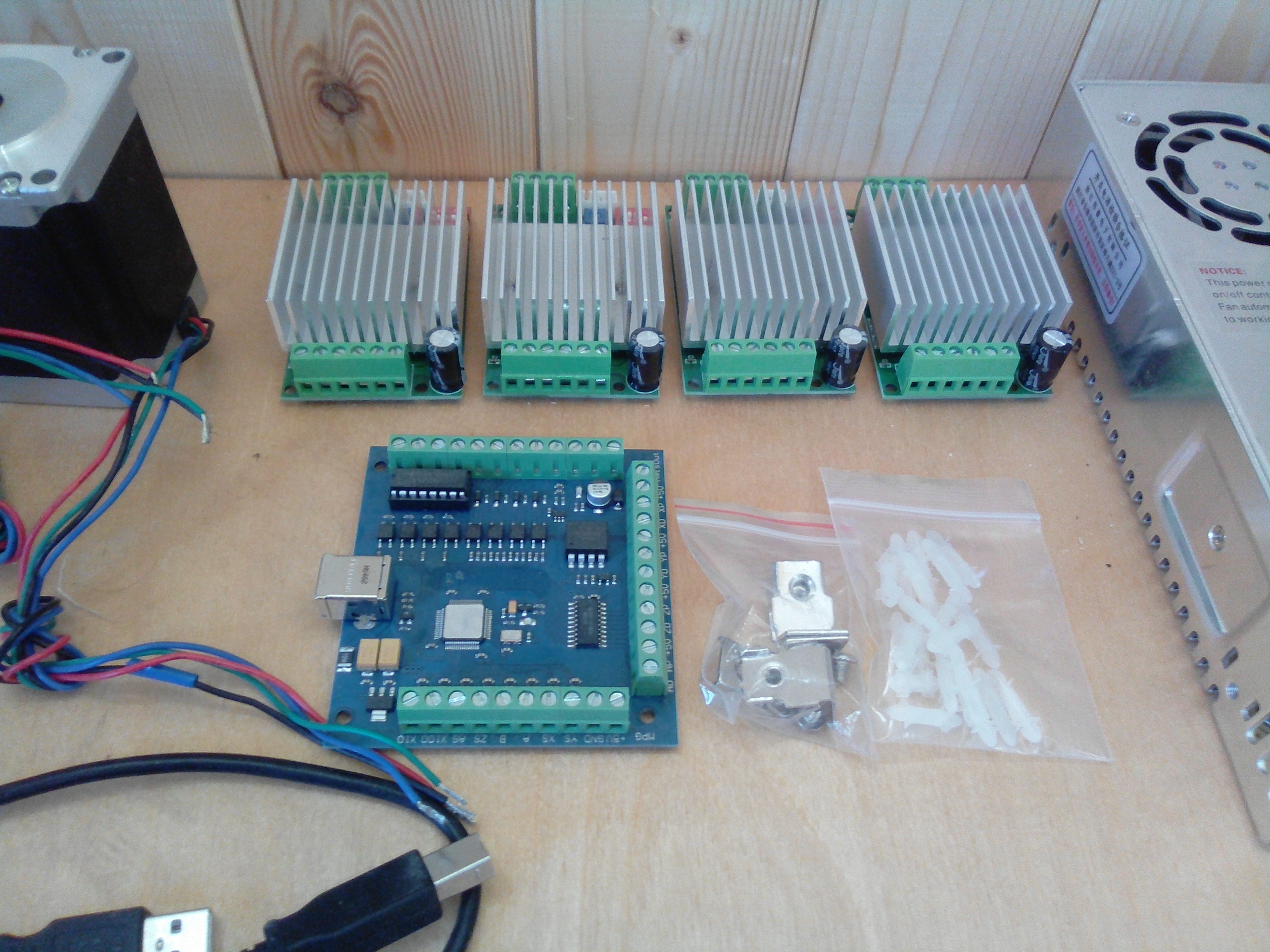 Шаговые двигатели Nema 23, плата опторазвязки TB6600, драйвера 4шт, блок питания 24в 10ампер, диск mach3.+Кабельль USB.