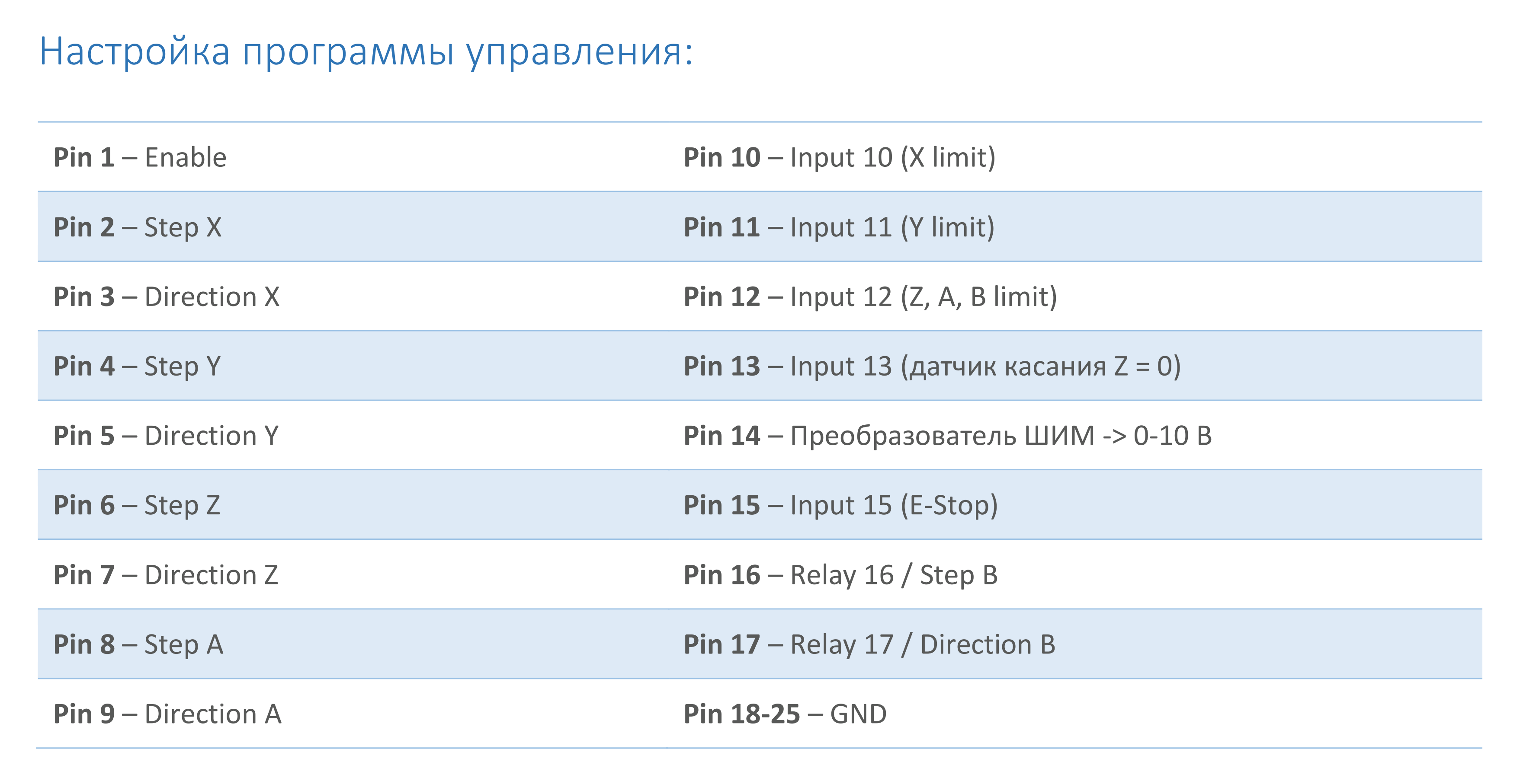 Скриншотов настройки LinuxCNC у меня нет.samand писал(а):Добрый день. Где можно посмотреть настройка данной платы для LinuxCNC