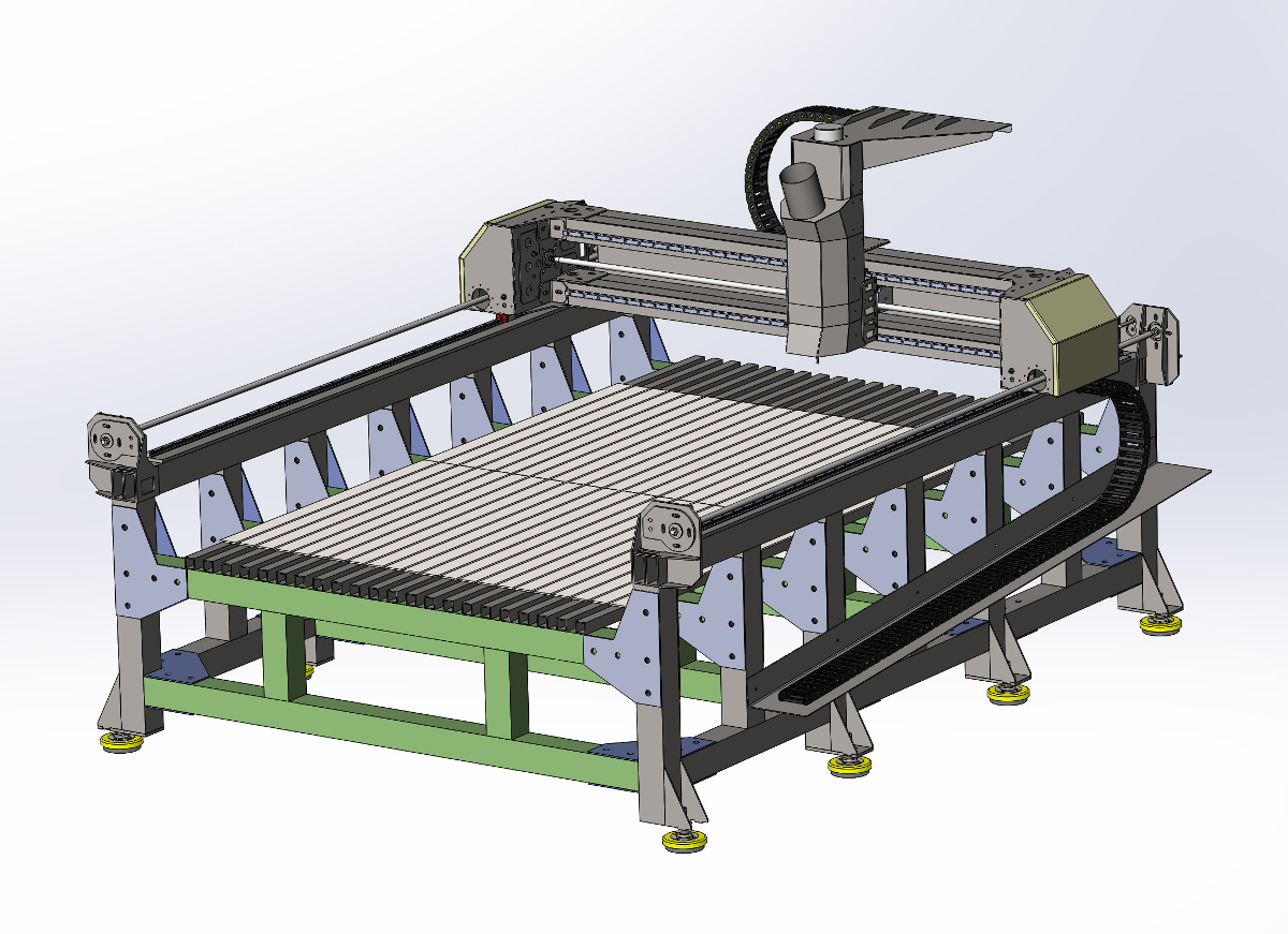 Параллельность направляющих по X. Я еще до конца эту систему не продумал, но предполагаю по-вертикали добиваться параллельности регулируемыми лапами станка, по-горизонтали - прогоном портала. Фиксировать регулировку - кронштейнами (синие), скрепляющими боковины (серые) и поперечины (зеленые).