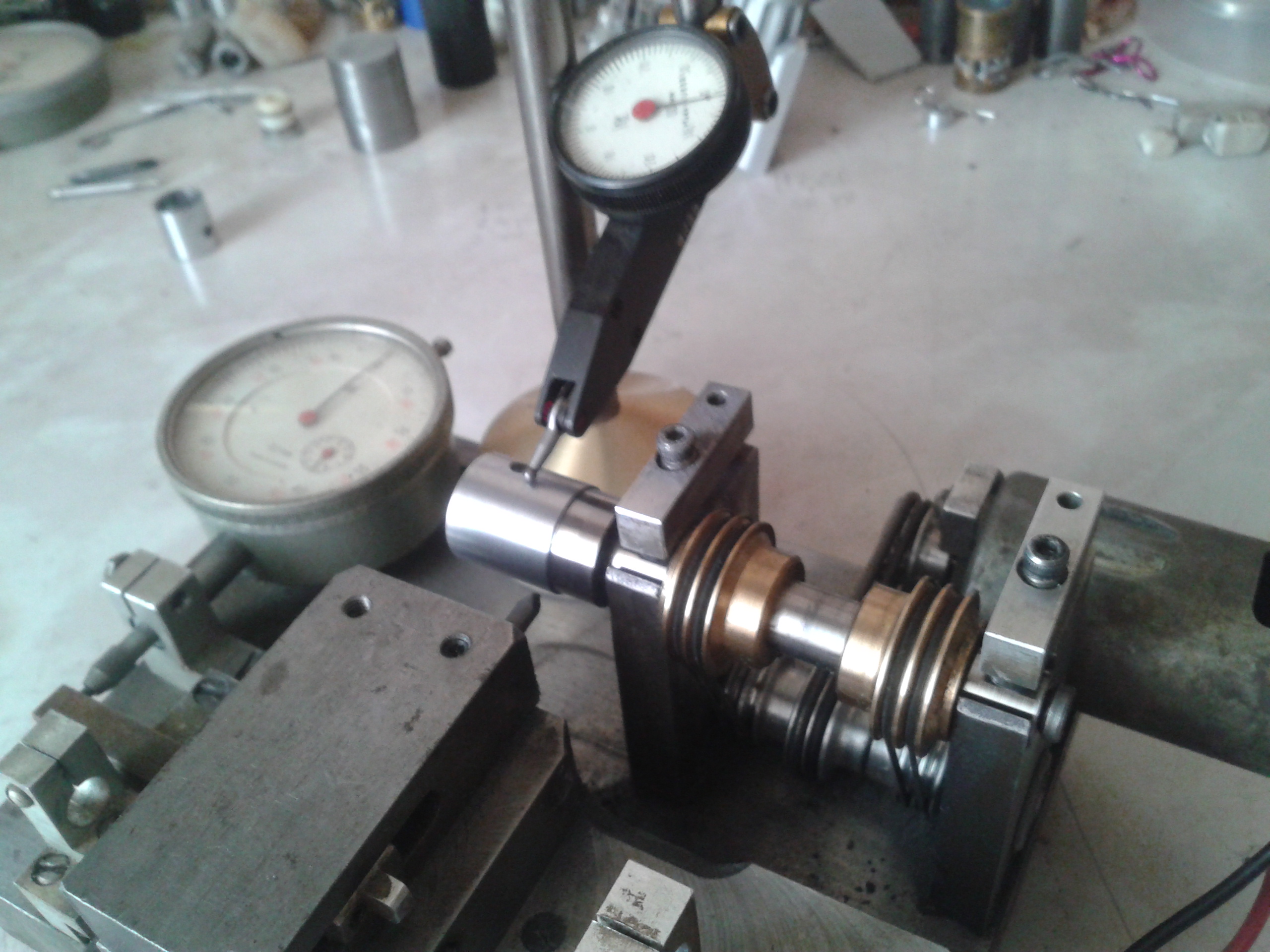 Оправку кололи на координатно расточном,отверстие там 17 ,а вал 14 .Изначально идея была в том, чтоб использовать втулку под черновую обработку вала и вторую под уже шлифованный.Вот теперь этот подход пригодился - потому как изношен мотылек от души ,и чтоб снять минимум ( 2 сотки) нужно попасть в эти 2 сотки биения. Выточил втулку с эксцентриком в 0.5 десяток. Перекос осей там получился в пределах пол сотки.На торце оправки ставил риски когда выставлял мотылек, чтоб не запутаться и пошустрее выставить . Конус на мотыльке в пределах 1 -2 микрона ,не выставлял на обратный ,так как нужно похромировать (он там сам получиться после хромировки :hehehe: ). По взрослому лучше делать другую приспособу - нужно вал ставить на призму ,а призму на планшайбу ,естественно призма должна перемещаться по "направляющим" по планшайбе. Я не стал так делать из - за громоздкости конструкции и большого вылета от опор этой всей халабуды - ну и правильно (теперь в голове другая конструкция).