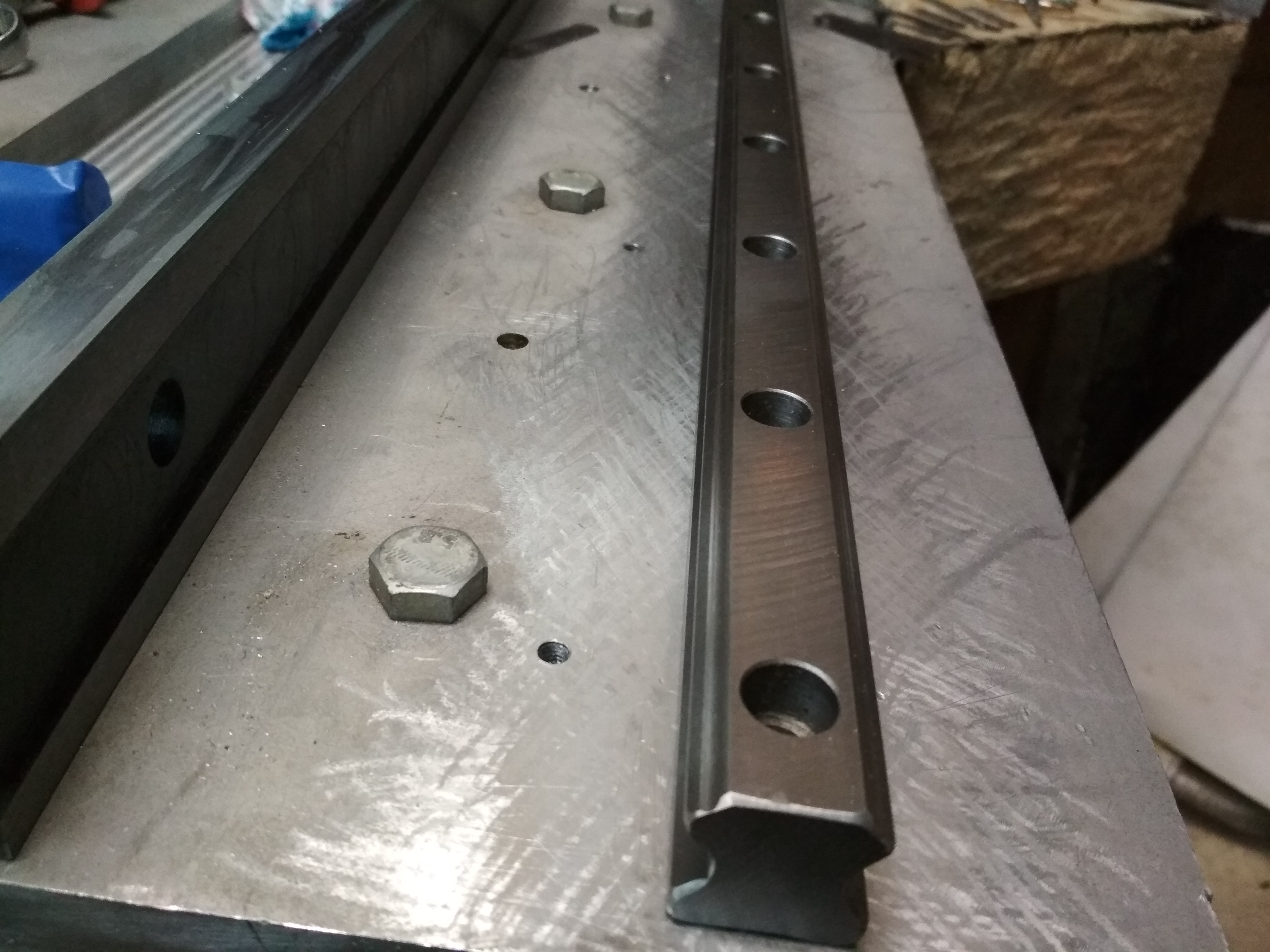 Винтом она быть не может, в силу того что обратная схема подвижного стола на станке где она фрезилась, а вот винтом стать при протяжке болтов крепления к боковинам может очень просто, а вот тут то и начинаются проблемы как мерить уровнем вертикальную плоскость, опрокинуть станок весом в тонну не вариант. Видимо тут только один способ проверки . Прилепить рельсы прикрутить к двум кареткам палку и на нее индикатор и вниз линейку шд и смотреть будет ли разница при затяжке винтов , по теореме пифагора искать зазор и ровнять уже посадочные на основе полученных измерений, либо подпихивать щупы, но надо тогда много щупов