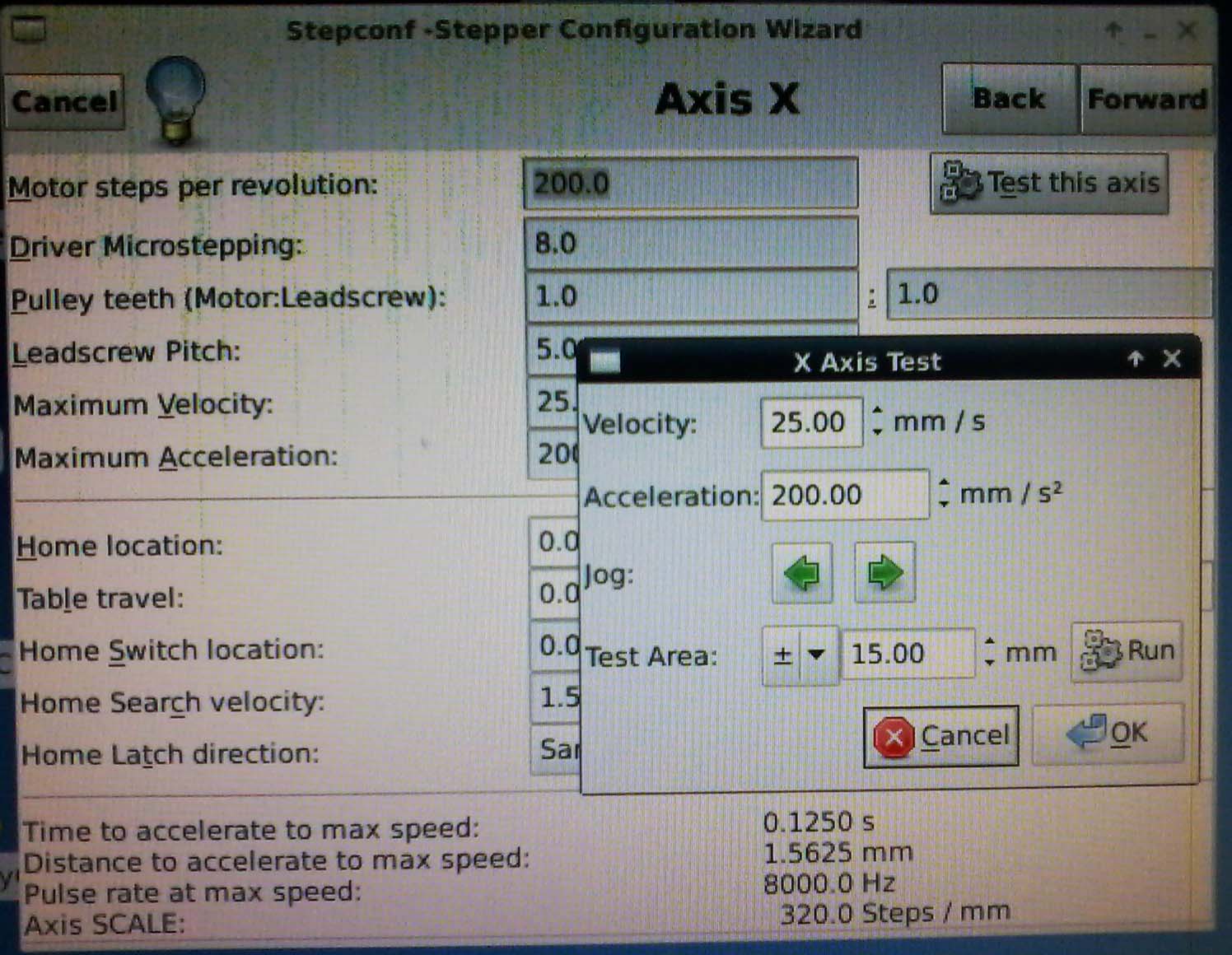Далее, например, при запуске теста оси Х происходит слегка заметный толчек двигателя оси Х, но никаких перемещений не происходит.