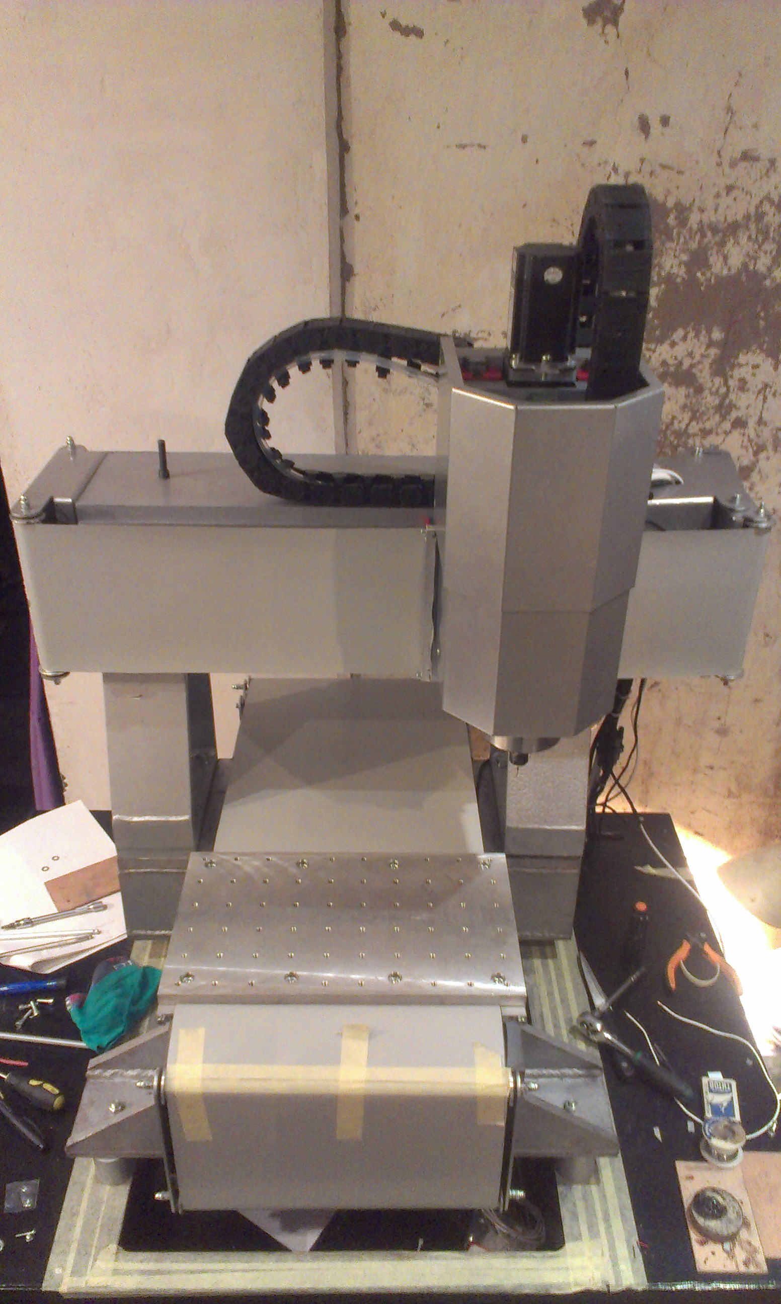 Шкаф еще не закончен, для перевозки станка на постоянное место жительства шкаф нужно будет полностью отсоединить. Поэтому пока такая путанка.