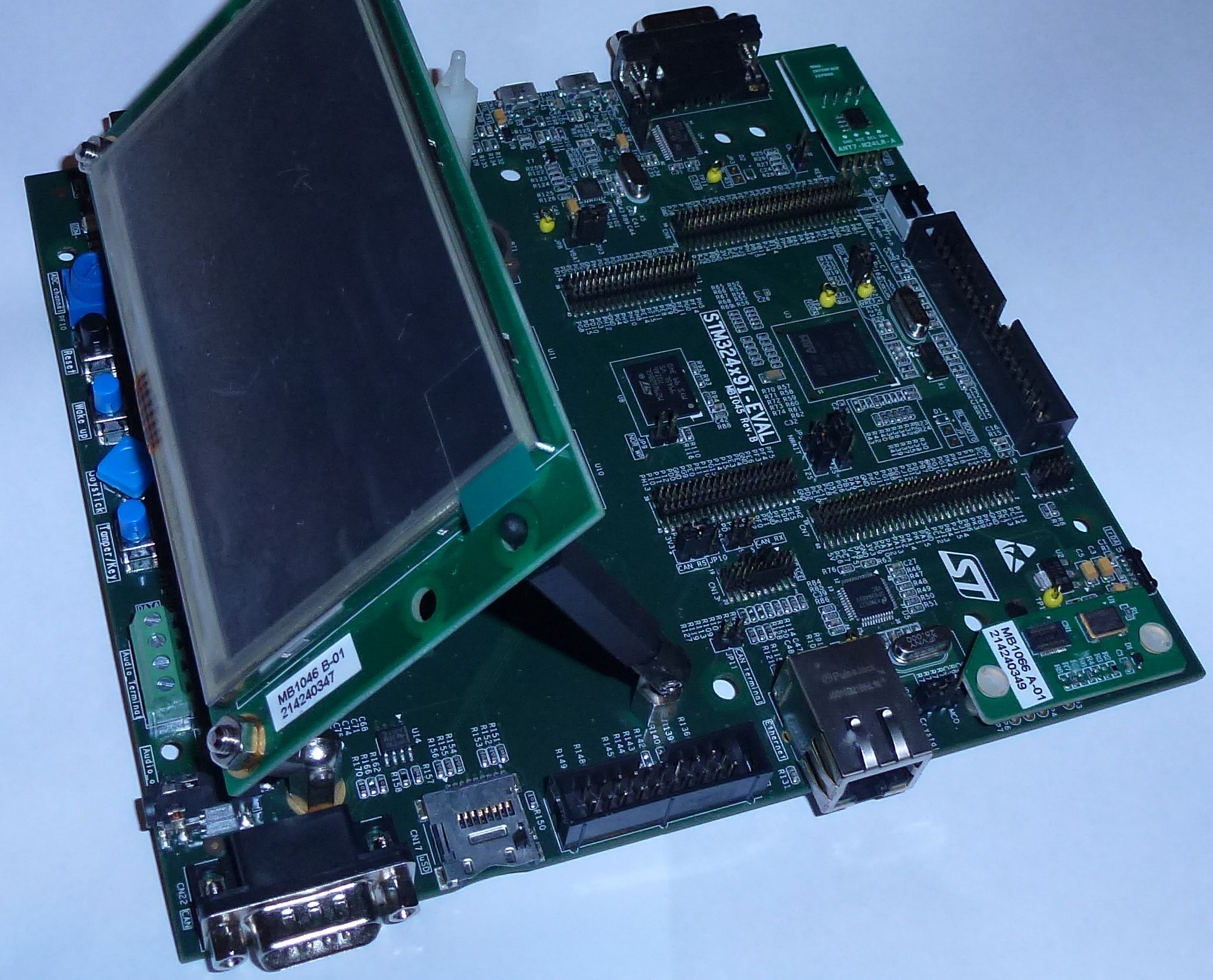 STM32429I-EVAL1 – полноценная демонстрационно-отладочная платформа для линейки микроконтроллеров ARM® Cortex™-M4 STM32F429 от ST Microelectronics. На плату установлен программатор/ отладчик ST-Link/V2 для микроконтроллеров STM32. Наличие разъемов расширения делает возможным простое подключение к STM32429I-EVAL1 дочерних плат для специальных приложений. Изделие поставляется с загруженной во флеш-память демонстрационной программой. Плата имеет все необходимое для начинающих и опытных пользователей для быстрого старта разработки приложений.