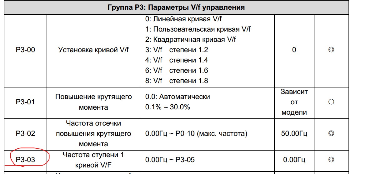 Поэтому если в режиме V/f то можно настроить параметр P3-01. Спасибо.