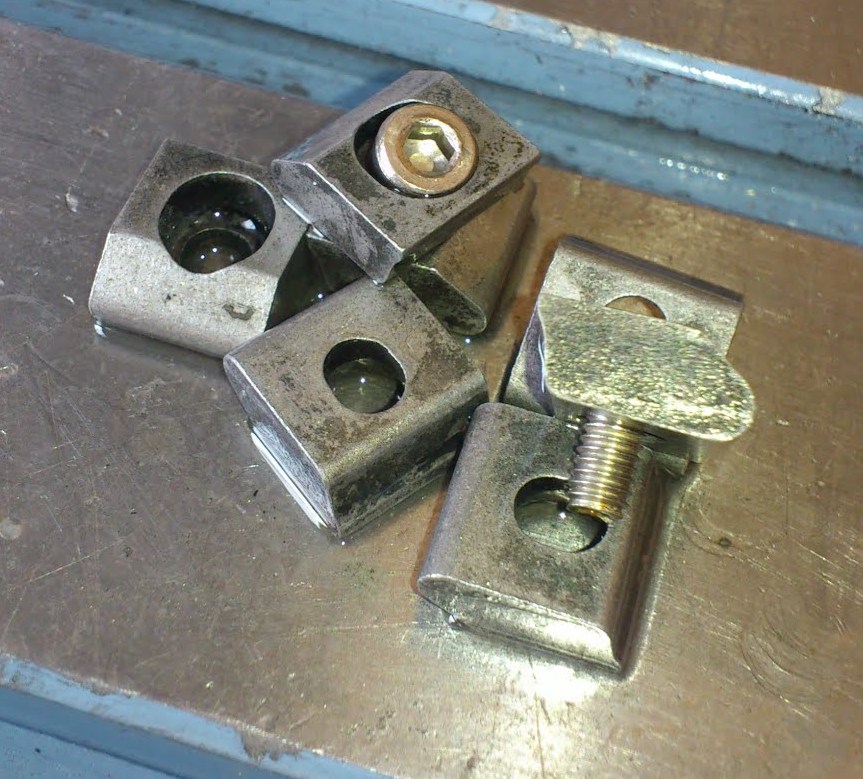 Есть интересные зажимы похоже на эти http://www.ebay.com/itm/12-PCS-5-8-T-Sl ... 45fdf056d0 но на пружинках. Вставляются в Т-паз и когда закручиваешь они расходятся и распирают деталь