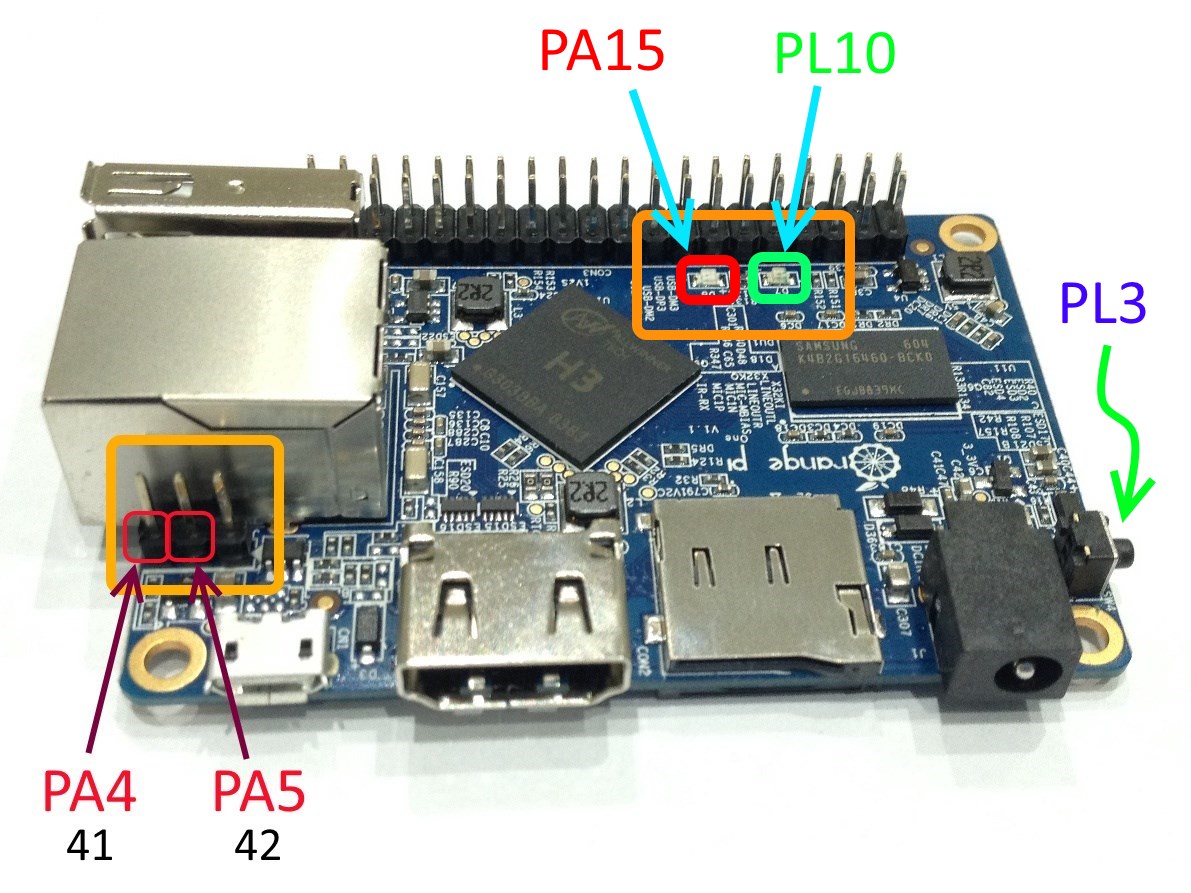 # PA15 - красный SMD светодиод на плате OPi1
