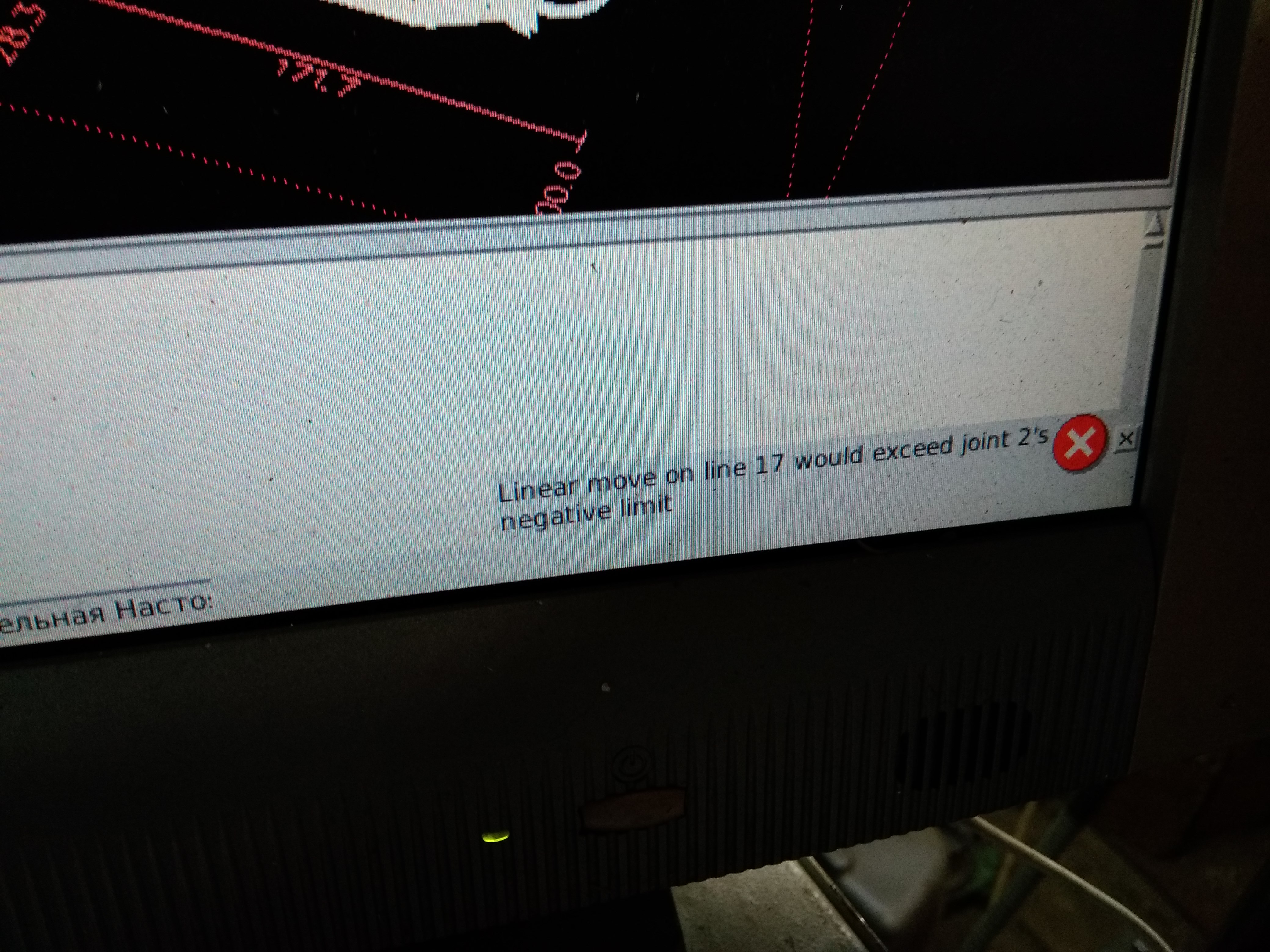 3) Программа выходит за минимум оси Z. Какого черта? Что это значит? Все было обнулено, до того обрабатывалась та же деталь, с той же программой, может я чего натыкал, потому, что иногда бывает начинаю лезть в настройки в надежде что-то понять.. Снова перегружаем LinuxCNC, все пропадает.