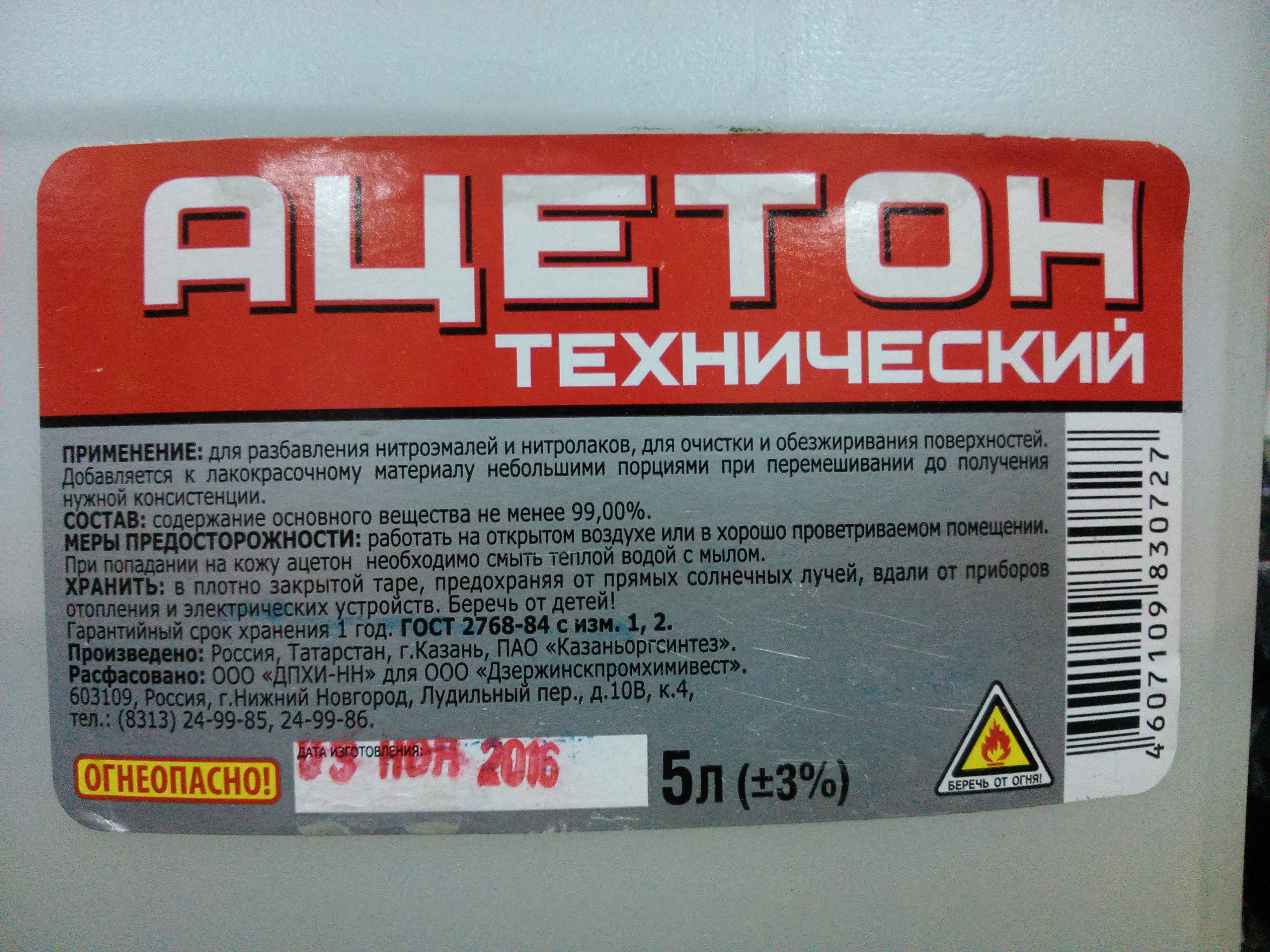 Из хоз мага в пятилитровой канистре. Можно еще попробовать "калошей" с предварительной зачисткой наждачкой.frezeryga писал(а):А ацетон нормальный? Или из хоз мага?