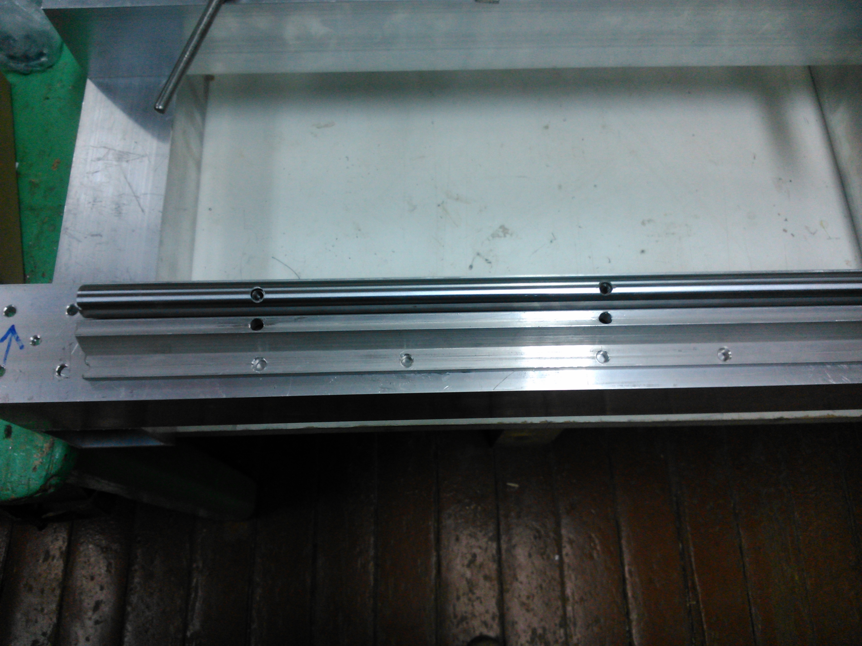 Добрый день, продолжаю заниматься станочком в перерыве между кружковскими соревнованиями- подготовил к сборке профиль портала. В центральной трубе резьбовые отверстия М5 с двух сторон, в верхней и нижней- сквозные отверстия.