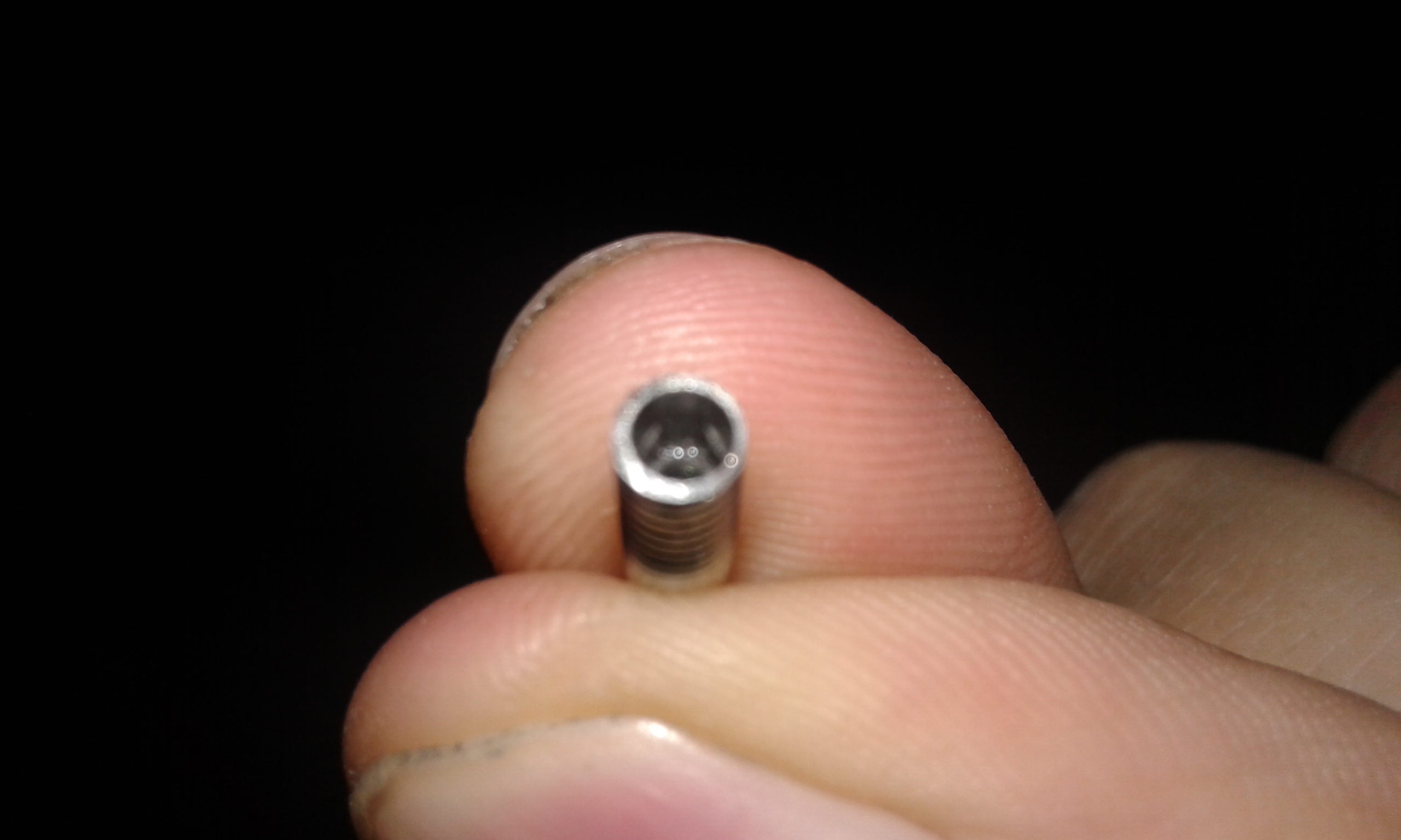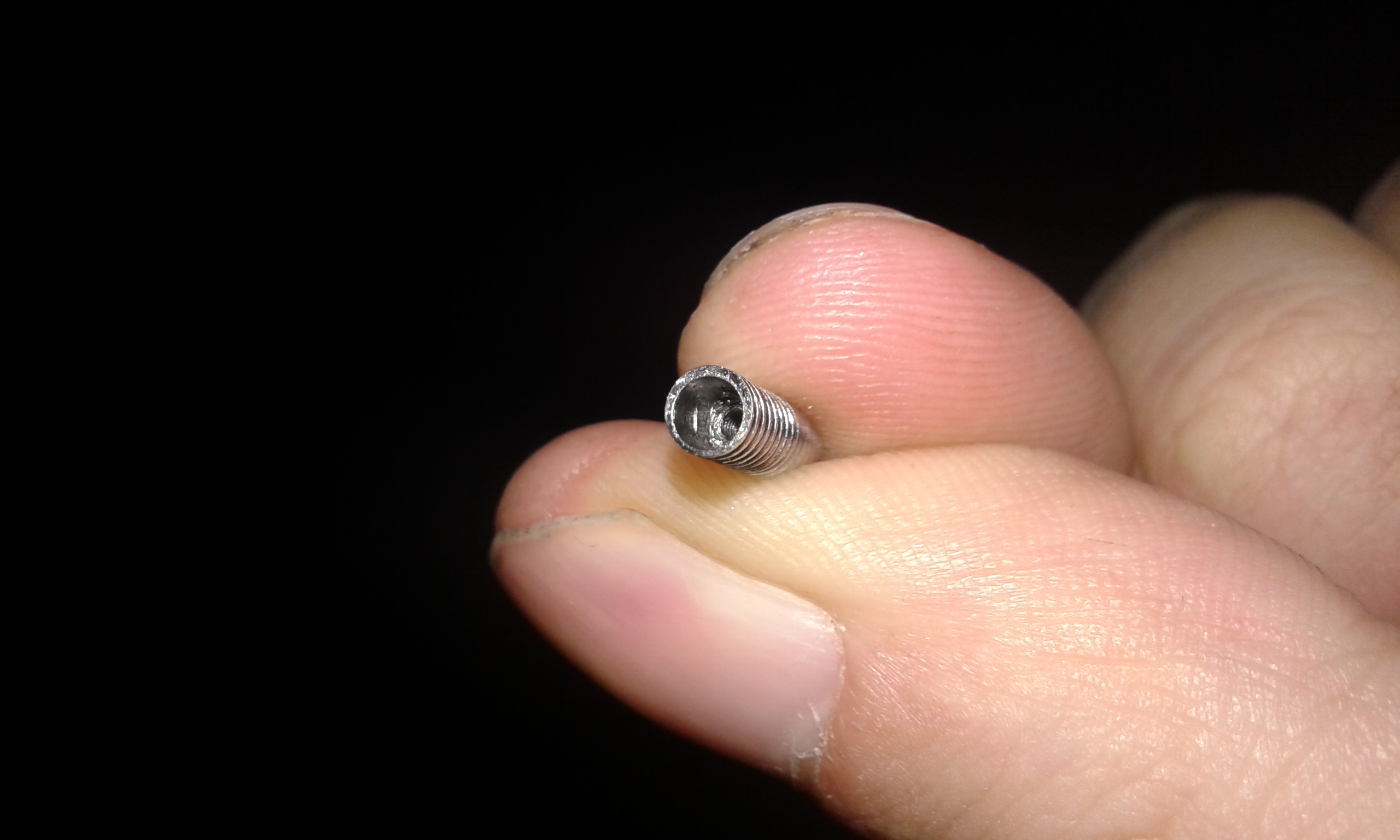 ЗЫ. фото турбин не нашел, гдето завалялись, прикладываю пару фоток что нашел - если шатун легко, то вот вам имплант - 5 осей, резьба коническая упорная(вроде так называется) - боком фрезы, профиль не такой как у обычной резьбы. Внутри если присмотретесь - гравером вырезан треугольник под ключ, после него резьба в которую идет метчик 1.2 вроде. Ну и лыски сняты чтоы как саморез шел. Титан, эксперементы так скажем:)