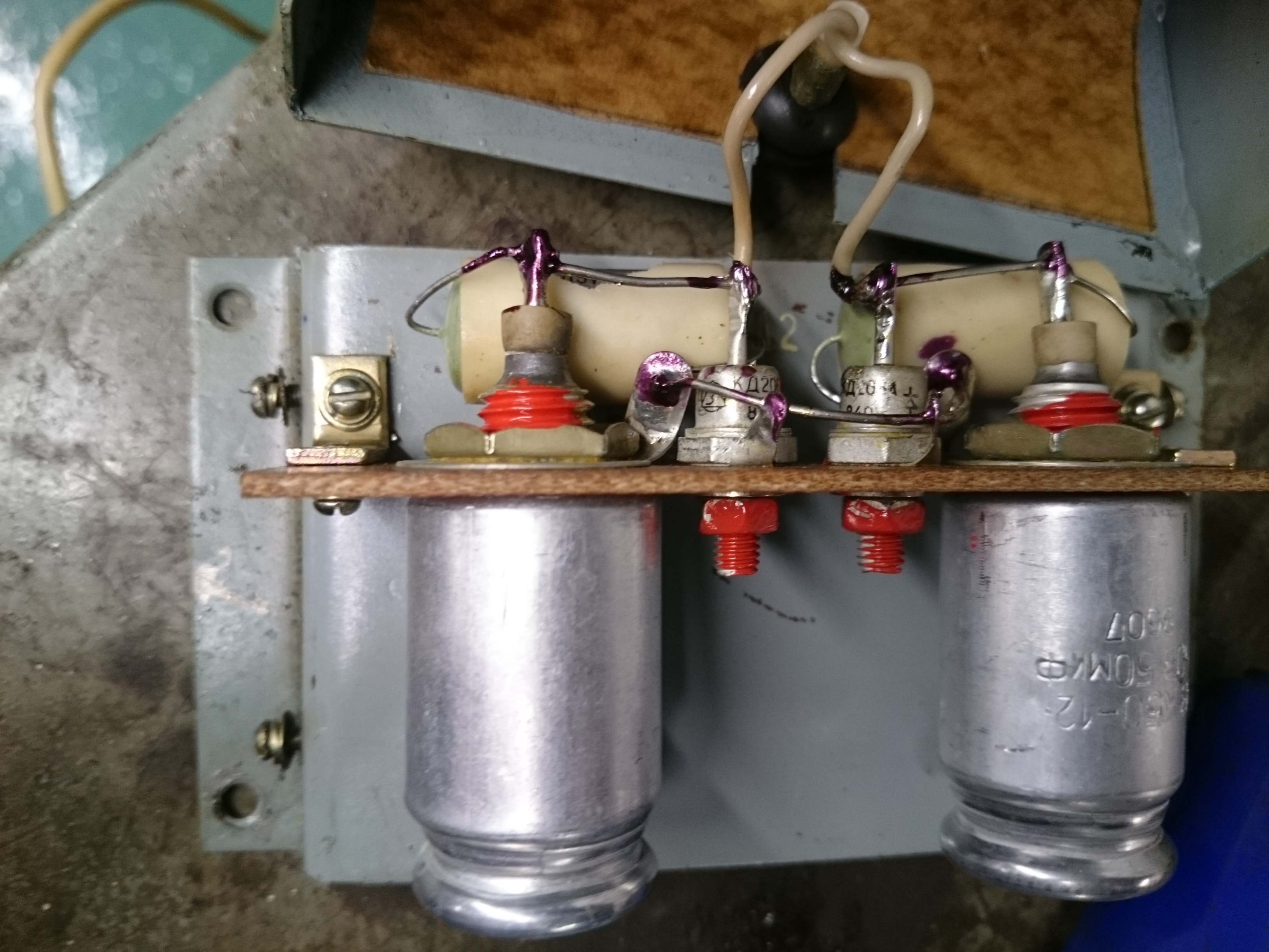 я со станка снял пару коробочек без маркировки, связь с внешним миром по двум проводам. сегодня открою. сфотографирую. Ну и коробку крупным планом два плеча с электролитами, бумажными кондерами и диодами. Это что-ли схема запуска?