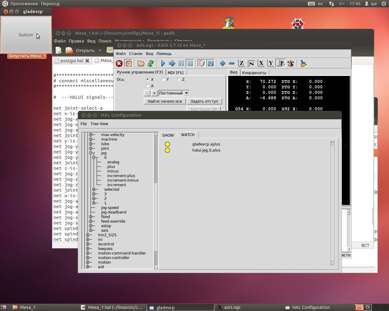 Machine configuration file is 'Mesa_1.ini'