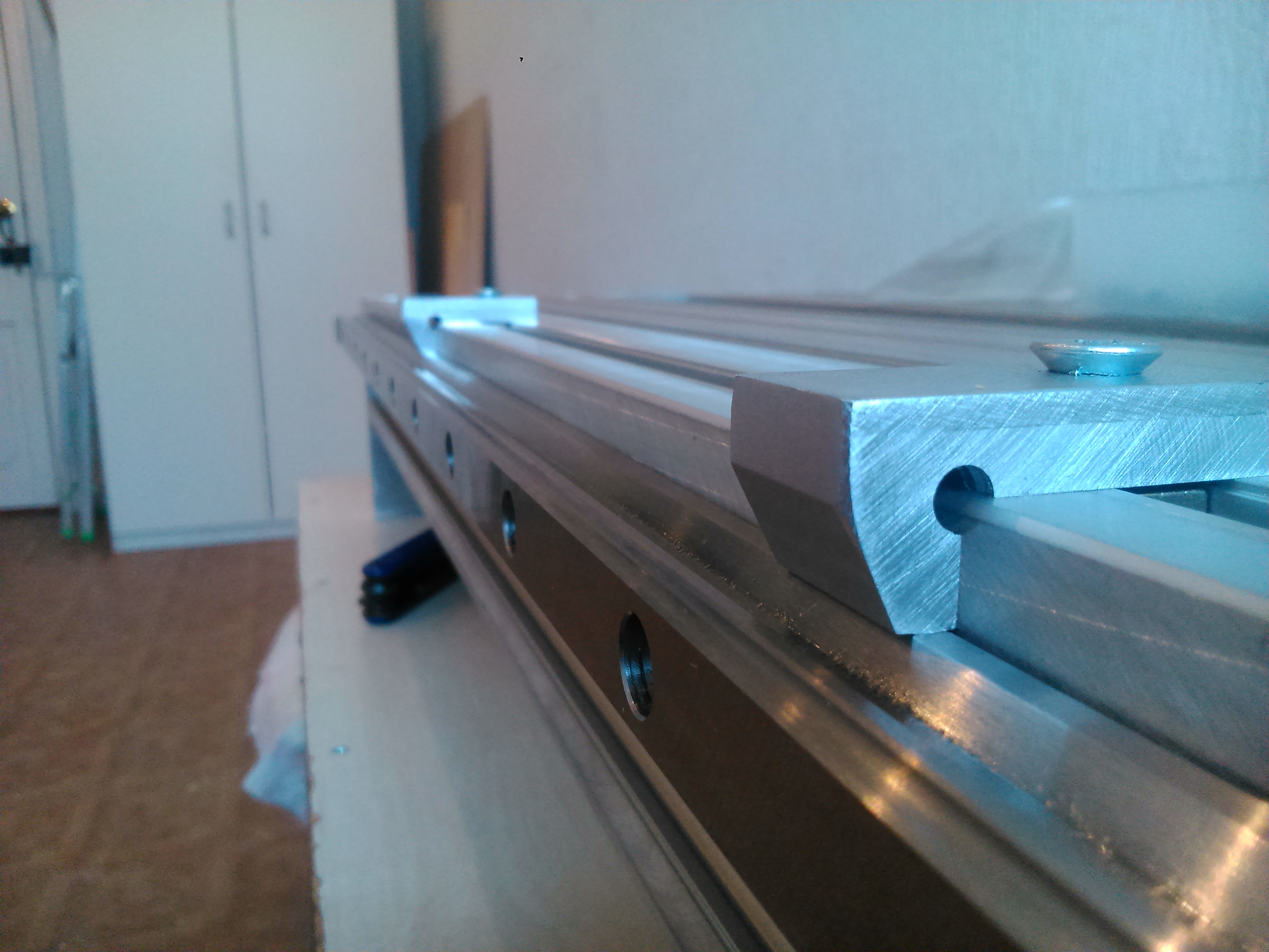 В процесссе сборке выяснилось что жутко не хватает упоров для монтажа рельсов, изготовил импровизированные упоры) Видно на фото. Просверлил отверстия под "виброопоры". Хотелось бы быстрее собрать, но пока нет ШВП.