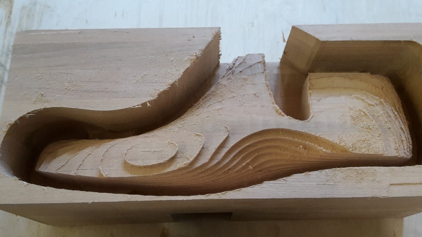 Форма модели имеет выпуклости и обратный уклон к подошве, и мне показалось логичнее обрабатывать с двух боковин!