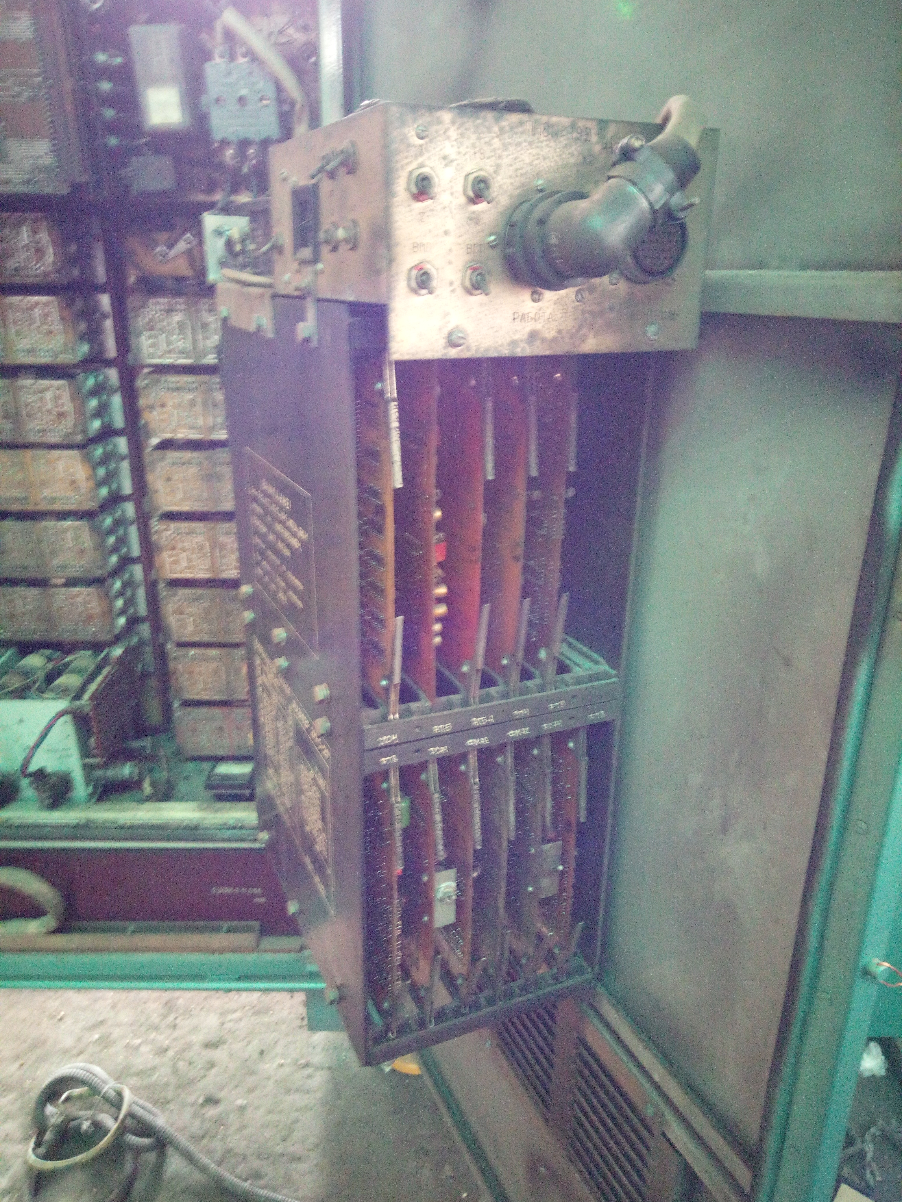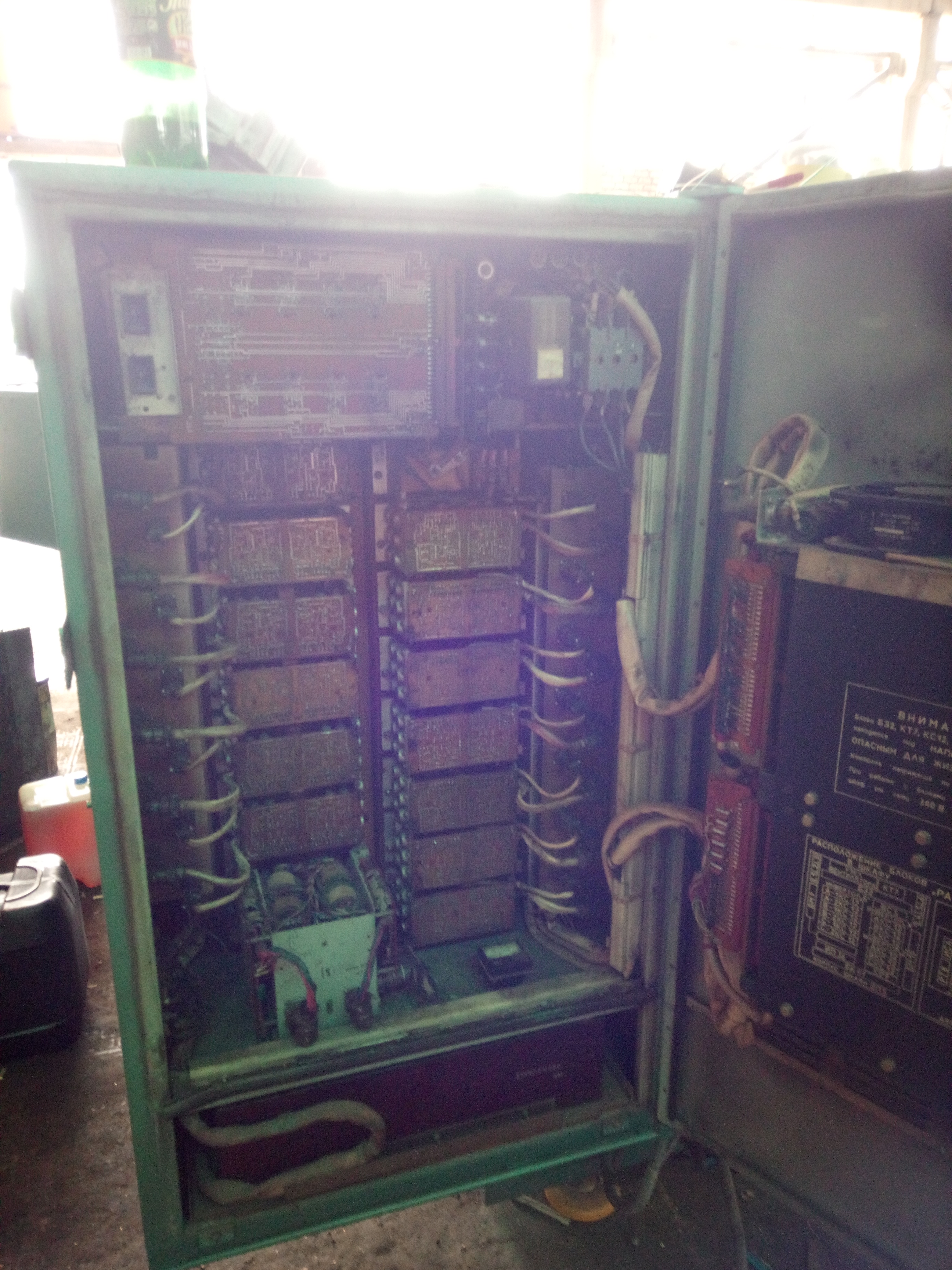 Как всегда в шкафу убрали лишнюю плату автоматики. Новый блок питания и релейные модули для включения контакторов. Старенький "Размер..."