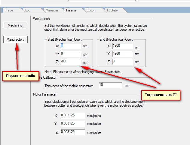 Озадачили блин.)) Первое что на ум пришло operation->move to reference poin. Там кнопка setting directly. Когда её жмём, то текущее положение станка принимается за машинный ноль. И соответственно начинают работать ограничения для Z.