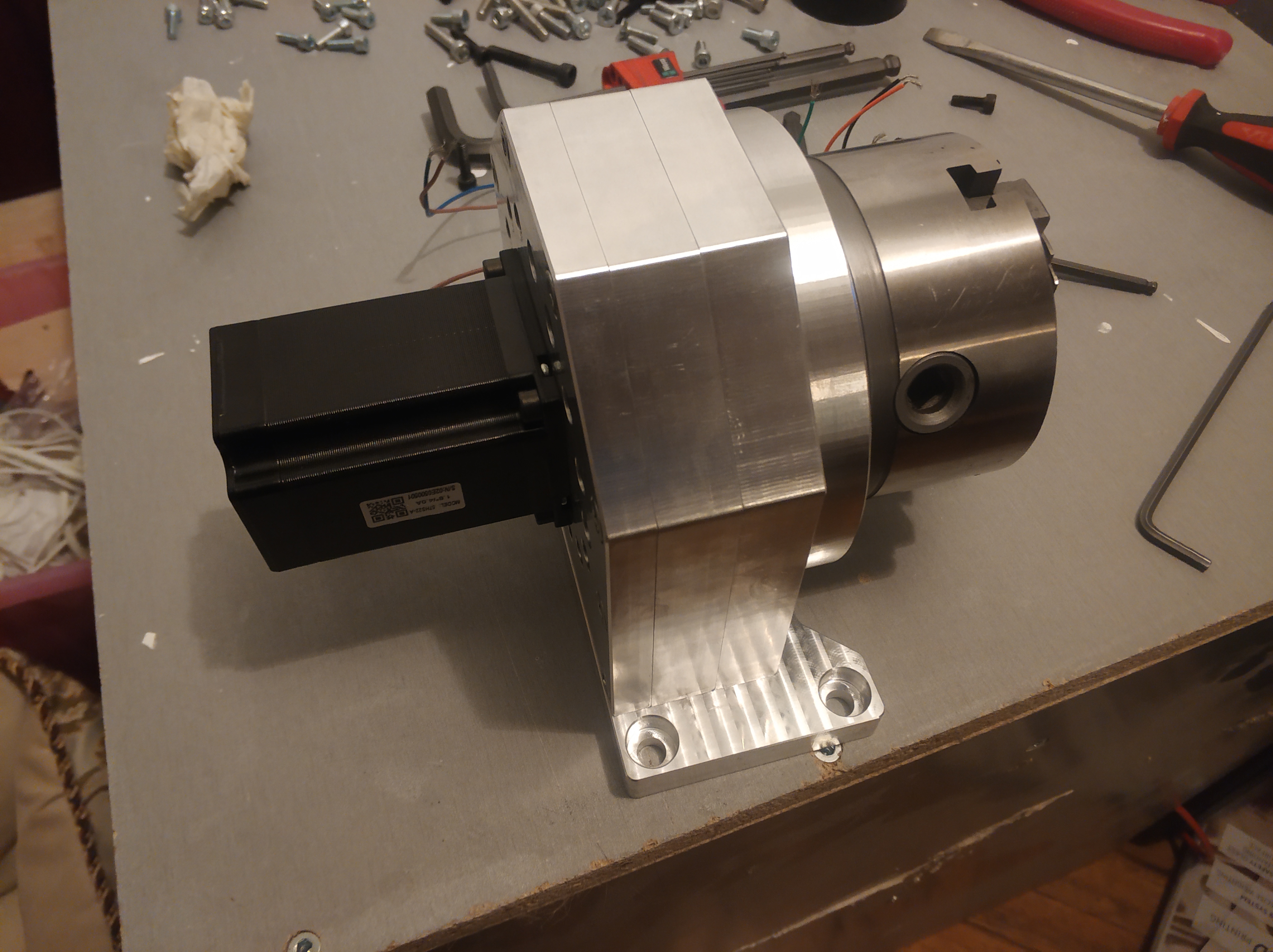 Интересует где редуктор добыл? Почему именно этот? Есть ли в оси перекрестный подшипник? Где патрон взял? Как качество оного всего? И примерный бюджет, если не секрет.