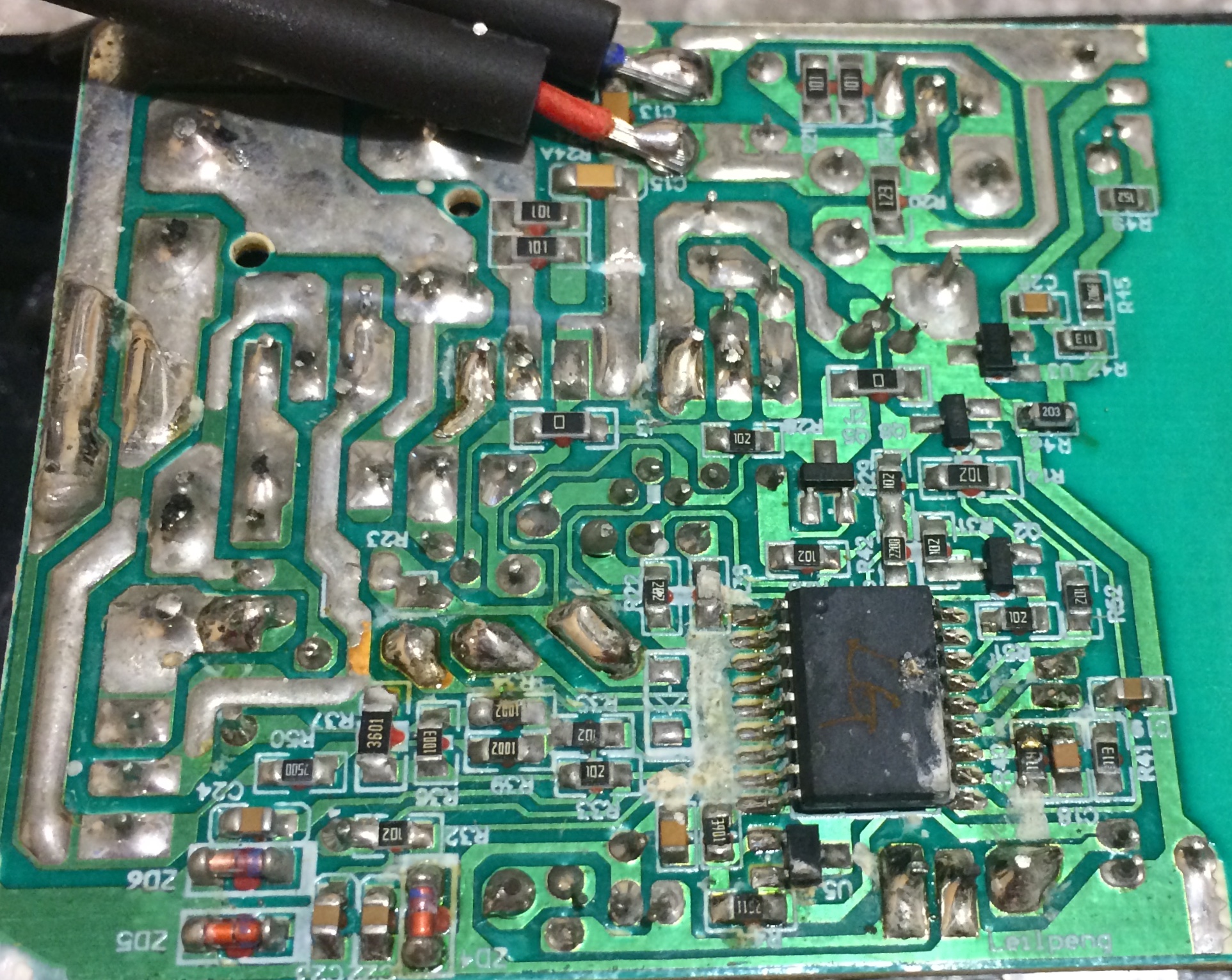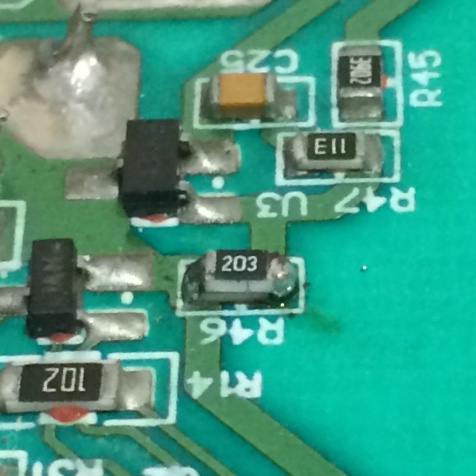 Подняли напряжение с 20В до 24В, для этого в цепи TL431 был допаян резистор 20кОм параллельно штатному резистору R46 номиналом 5,6кОм.