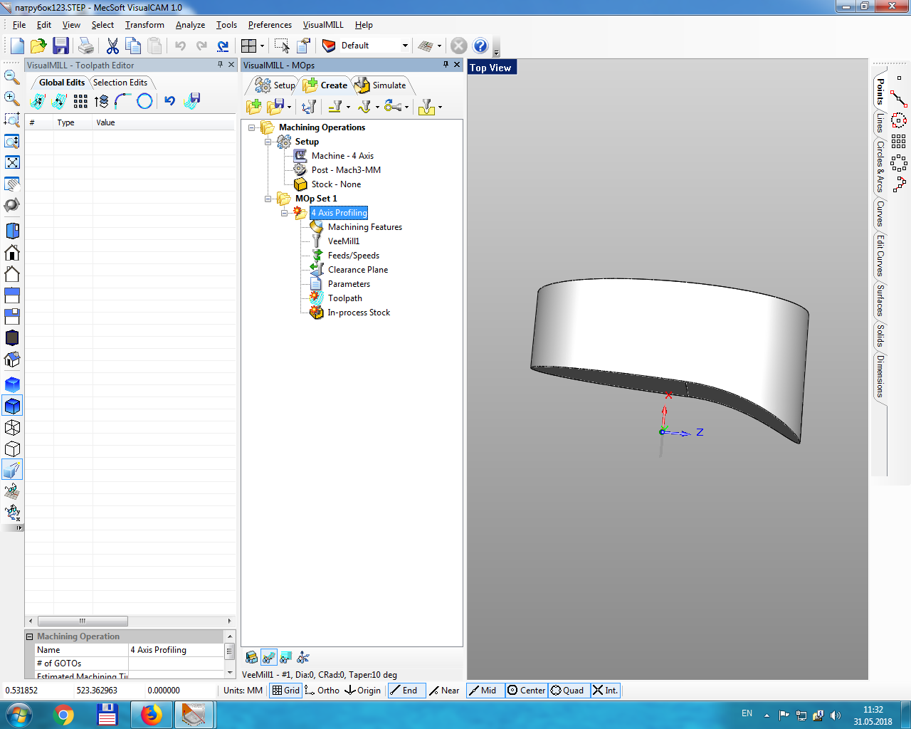 Добрый день есть вот такая деталь, мне надо обработать на фрезерном 4ч осевом станке по кромке детали то есть что б было смещение только по x и b