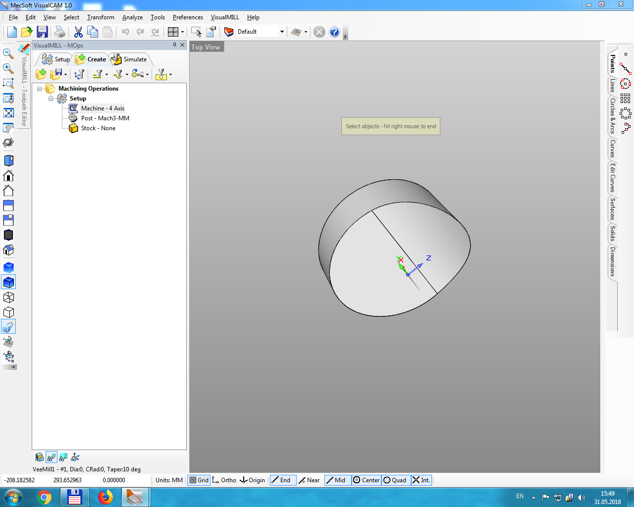 Даже не знаю как, но какой-то контур или область обработки надо выбрать. Иначе никак, попробуйте метод научного тыка, авось получится. Можно, канеш, доки к VisualMILL почитать.