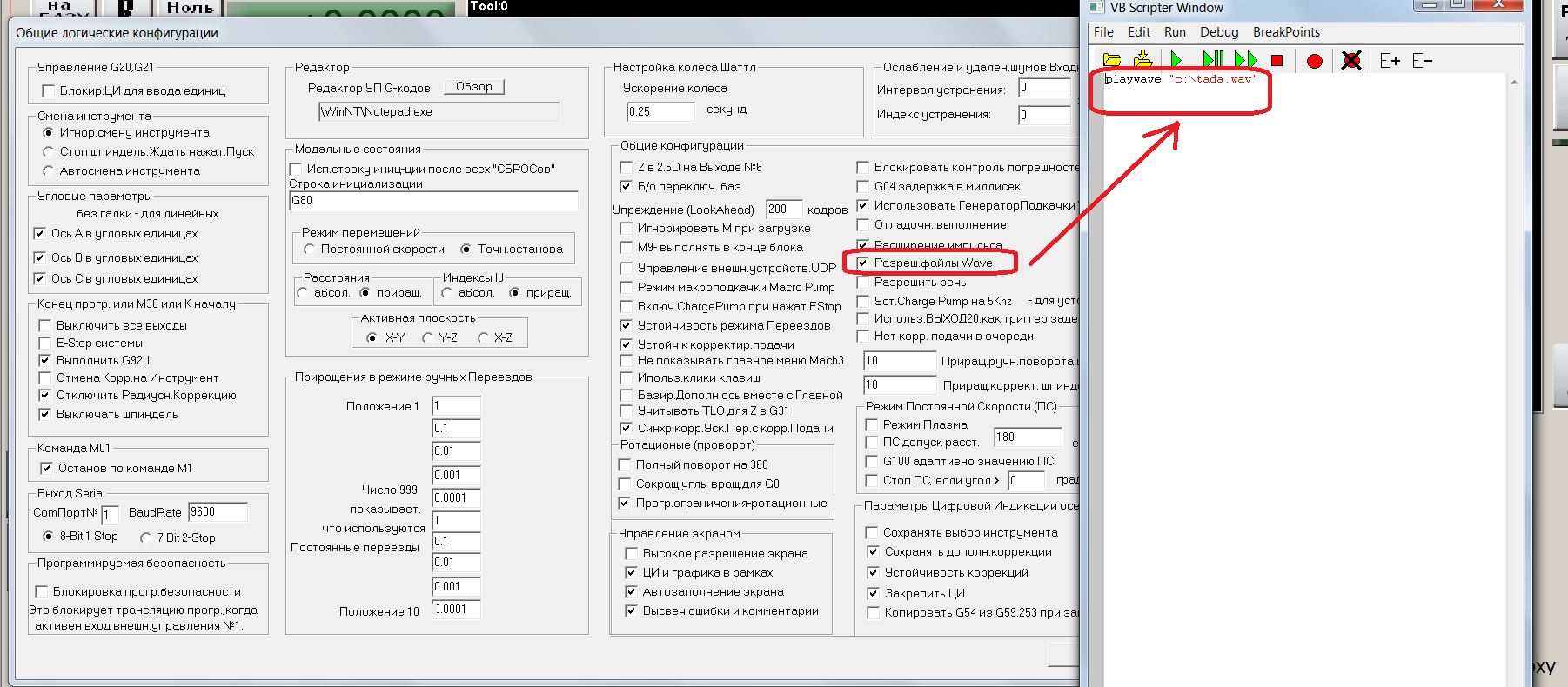Если не нужно управлять оборотами шпинделя и он включается релюхой, то тогда шпиндель можно включать командой М07 (жидкостное охлаждение СОЖ) а поворотку посадить на шпиндель и управлять степ/дир. Когда это получится можно пойти дальше и в макросах М03 и М07 поменять местами текстinFamous писал(а):а если ее подключить как шпиндель? я видел в настройка Smoothstepper что можно управлять шпинделем по Step/Dir