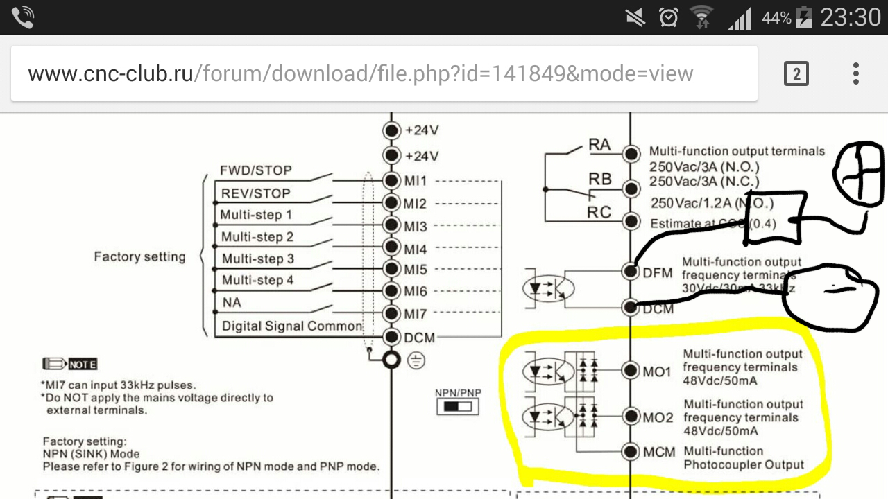 И для этого тоже. На вход чпу. Или на вход серводрайвера.dreamisi писал(а):Нужно: передать ошибку с пч на систему ЧПУ (для аварийного останова станка в случае перегруза шпинделя).