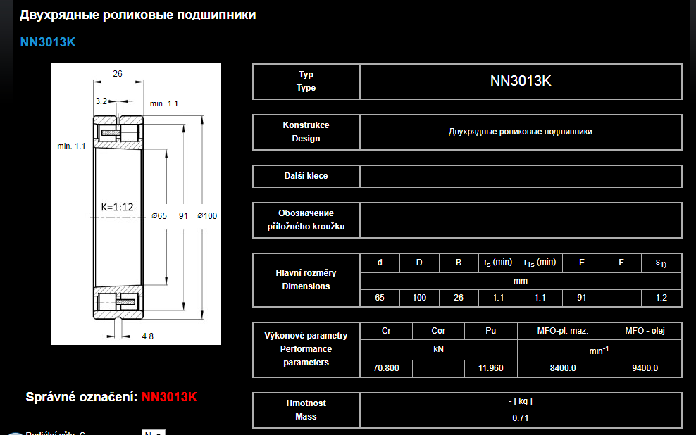 Вот полные параметры подшипников.