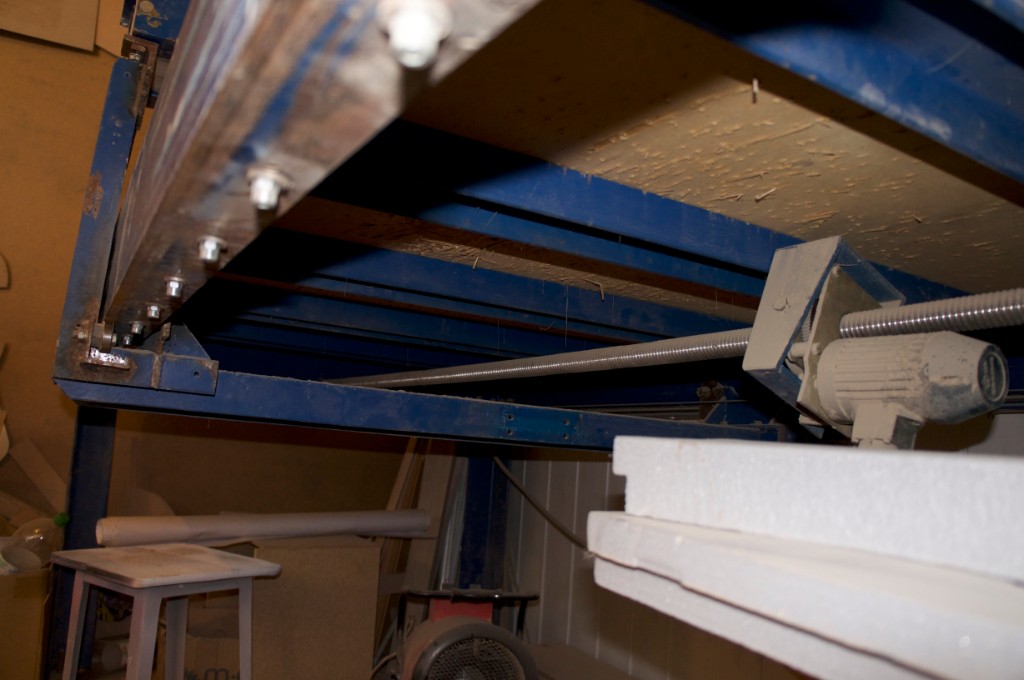 Про направляющие я уже писал - ролики ездят по шестигранникам, а вот на привод взглянул чуть внимательнее. Насколько я понял - это откуда-то снятый винт с гайкой (швп). Т.к. у нас тут авиазавод, то скорее всего это добро оттуда. Винт 30-35мм в диаметре. По длинной оси (2.4м) при прикладывании к нему небольшого усилия прогибается весьма легко, но используется вращаемая гайка. Люфт руками чувствуется, но не сказать чтобы прямо сильный. Взял узел с оси Z, разберу - посмотрю можно ли что-либо с этим сделать.
