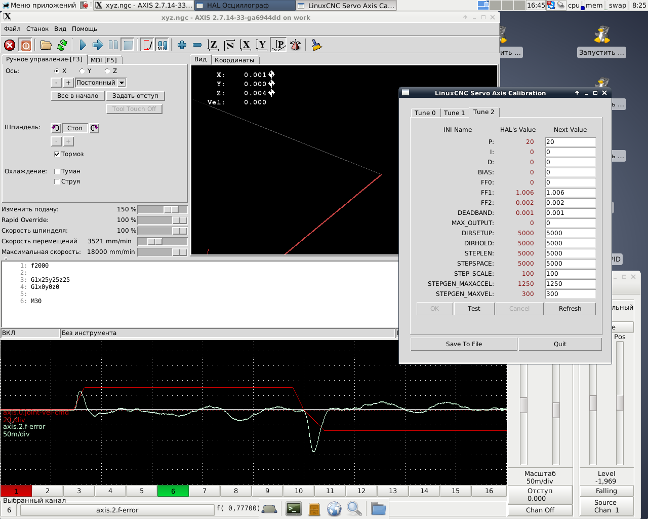 # но, насколько вижу, при движении всё равно работает пид Linuxcnc.
