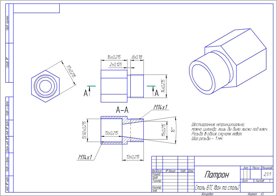 Я другое изобретал, переходник с навинчиванием на вал. Но сказали, что соосности не выйдет. Зато потренировался.