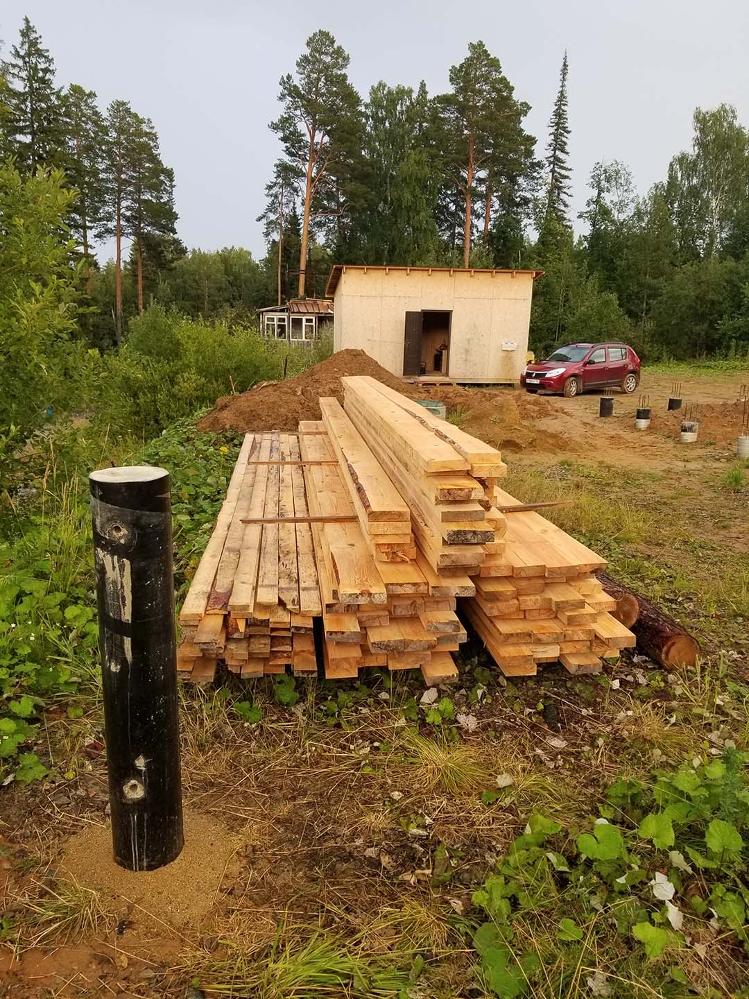 Когда покупал пиломатериал для опалубки — купил пару столбов из лиственницы.