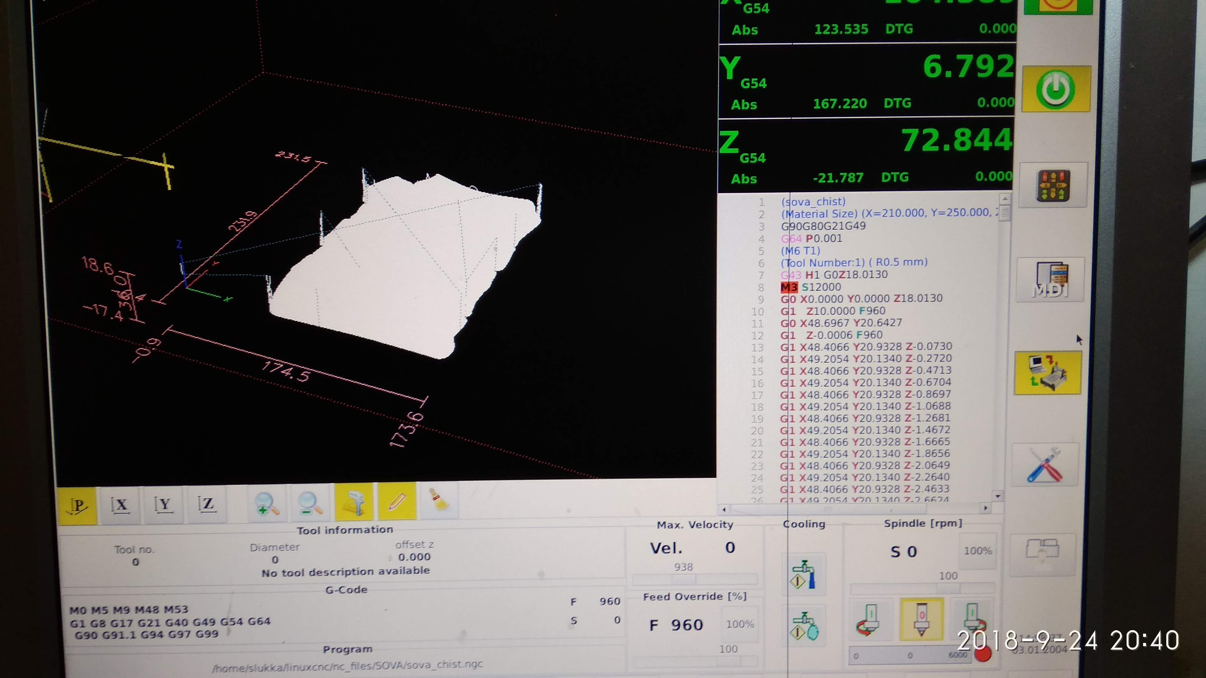 Да как то привык уже к gmoccapy, но посмотрю и tklinuxcnc. Ну а пока в чистовых обработках буду прописывать первую строку.