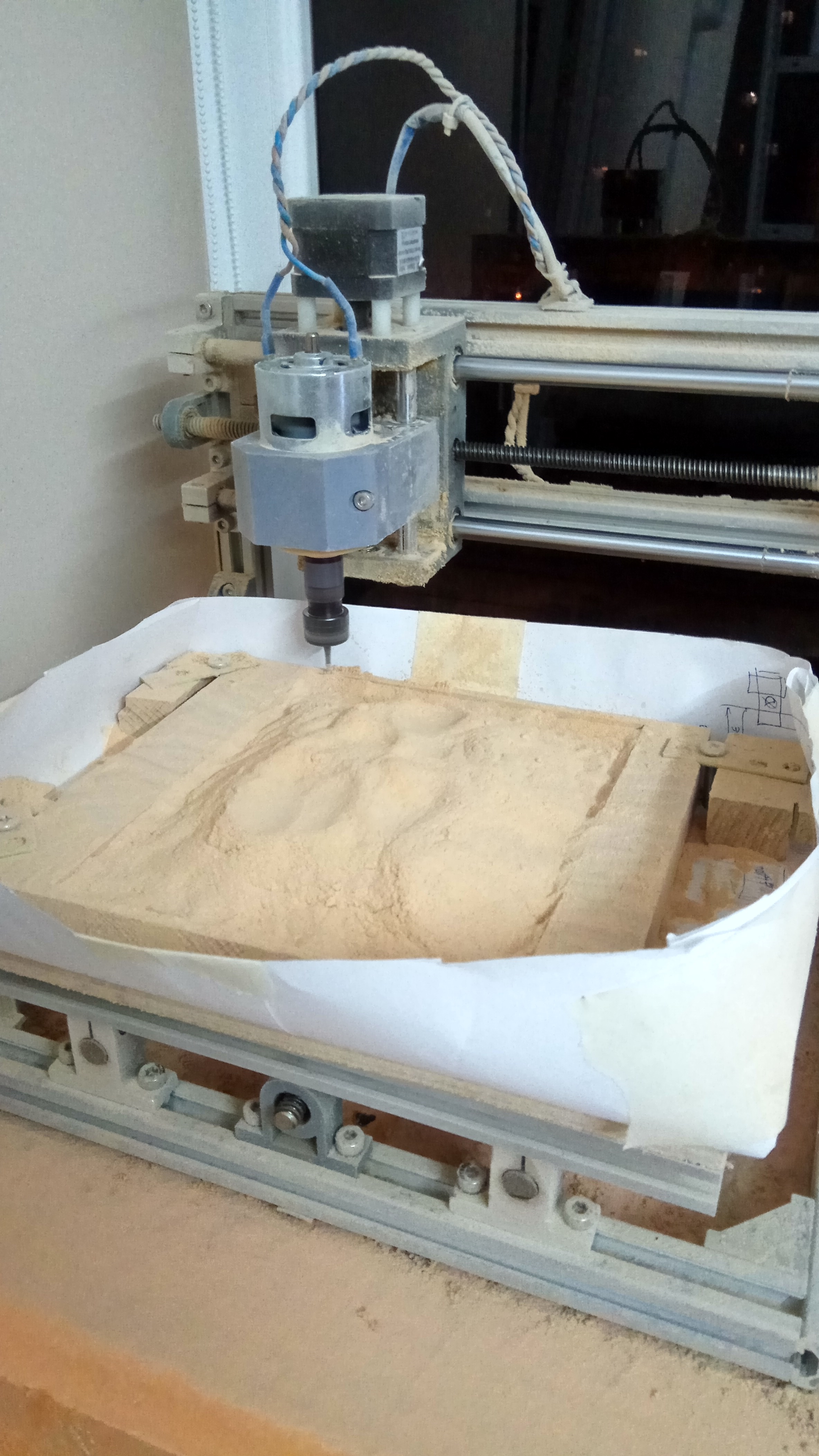 Я просто заменил основной стол на максимально возможный, чтобы не терять высотуasdal писал(а):К тому же подумалось, что было бы неплохо увеличить жертвенный стол до максимально влезаемых в станок размеров, чтобы крепление заготовки вынести за рабочую зону станка, дабы использовать всё рабочее поле, не теряя место на крепление заготовки.