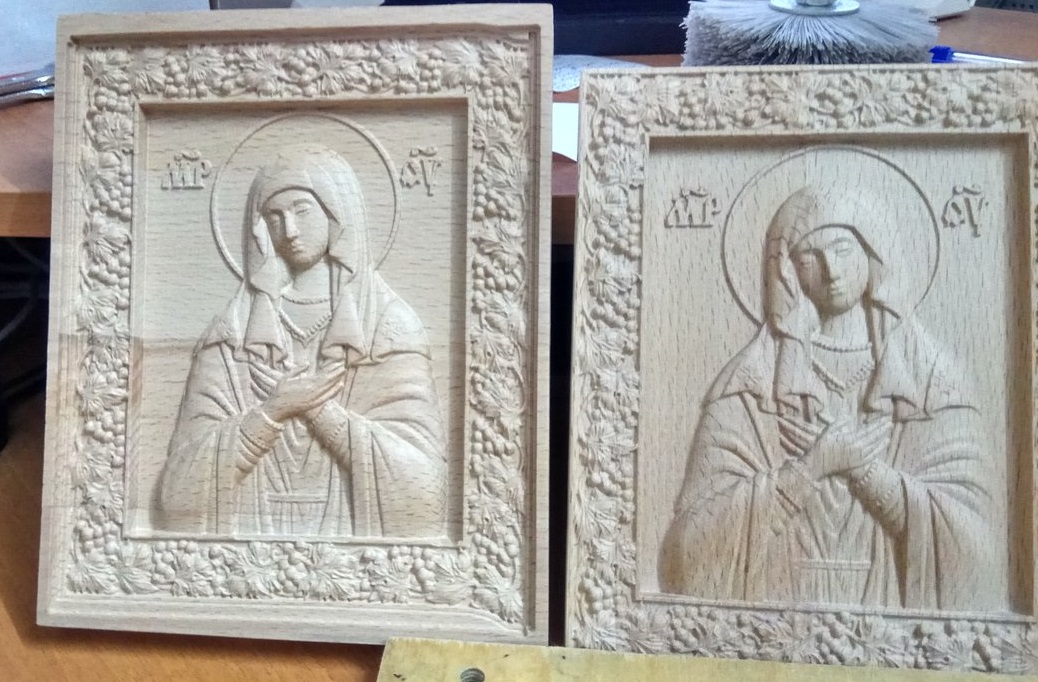 Итог: При движении по X произошел сбой не знаю чего. Можете наблюдать в правом нижнем углу иконы. От этого схватил много геморроя, т.к. уже была черновая обработка с припуском 1мм. Все равно пришлось подрабатывать наждачной бумагой в районе рук и головы образа.