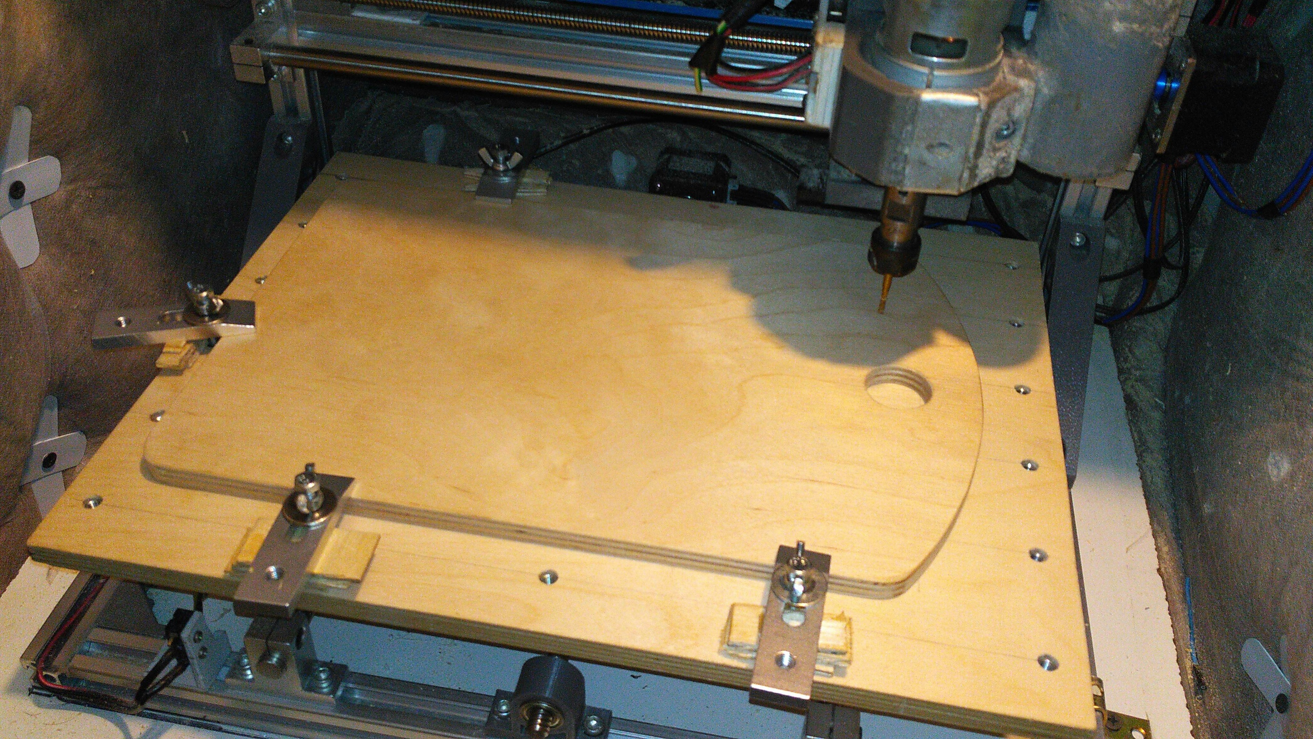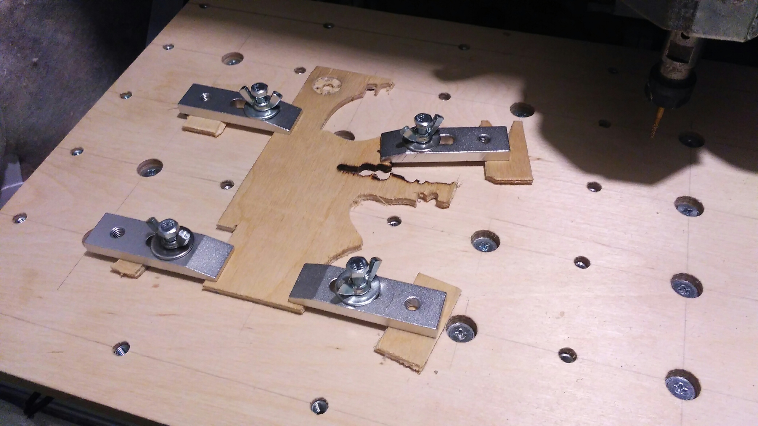 Расчертил размеры и расположение отверстий, вырезал фанеру, на станке же отфрезеровал нужные отверстия для забивных гаек.