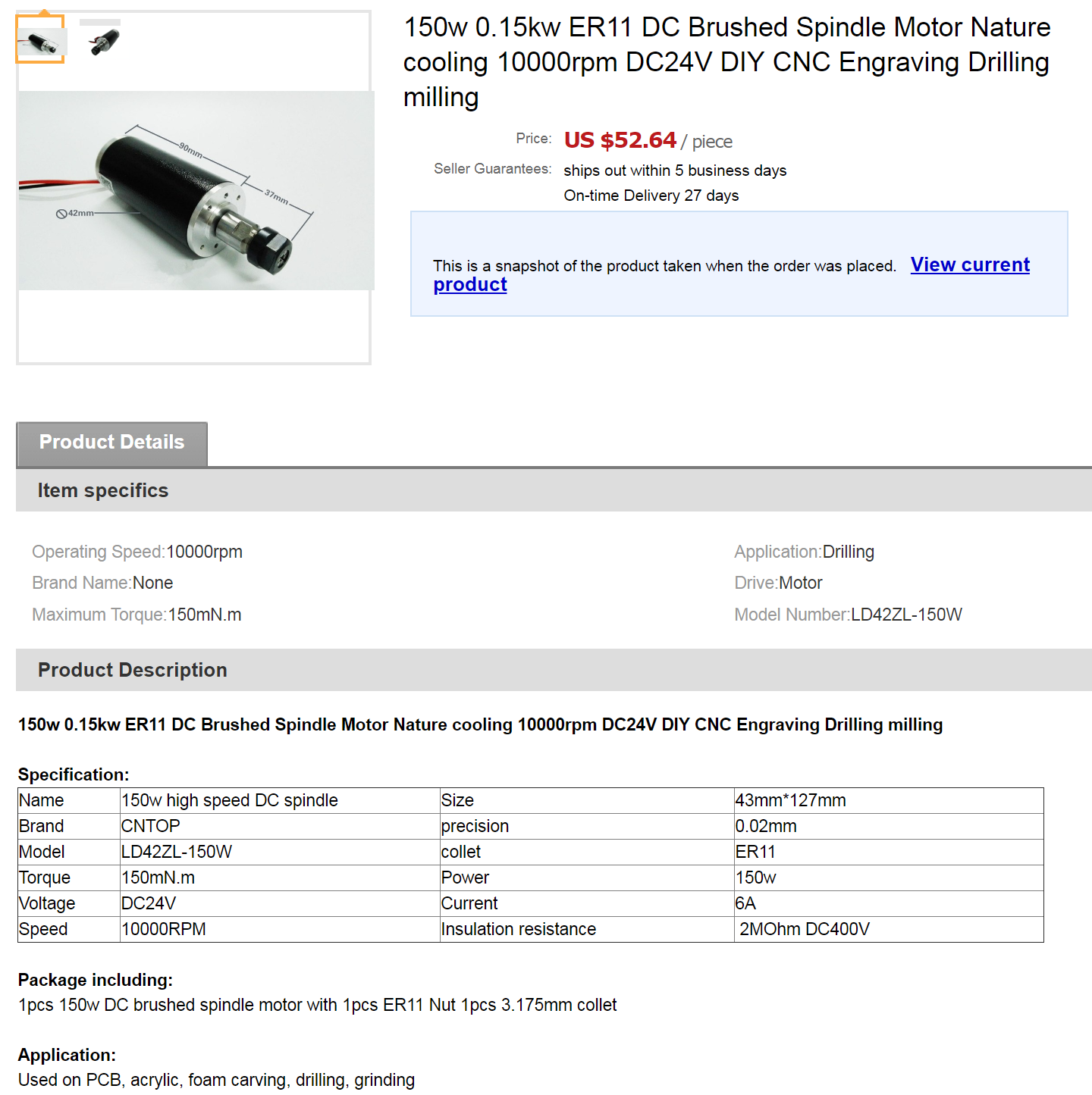 Если искать по строке "spindle 42mm" то выбор не велик.. или высокооборотистые до 60к оборотов, которым нужен частотик и водяное охлаждение , в стоимость двух станков.. или 12к оборотов.. безщёточный.. стоимостью со станокI_am_the_Lexx писал(а):Я немного подзабыл какие есть варианты замены штатного на шпинделя на другой без смены держателя шпинделя?
