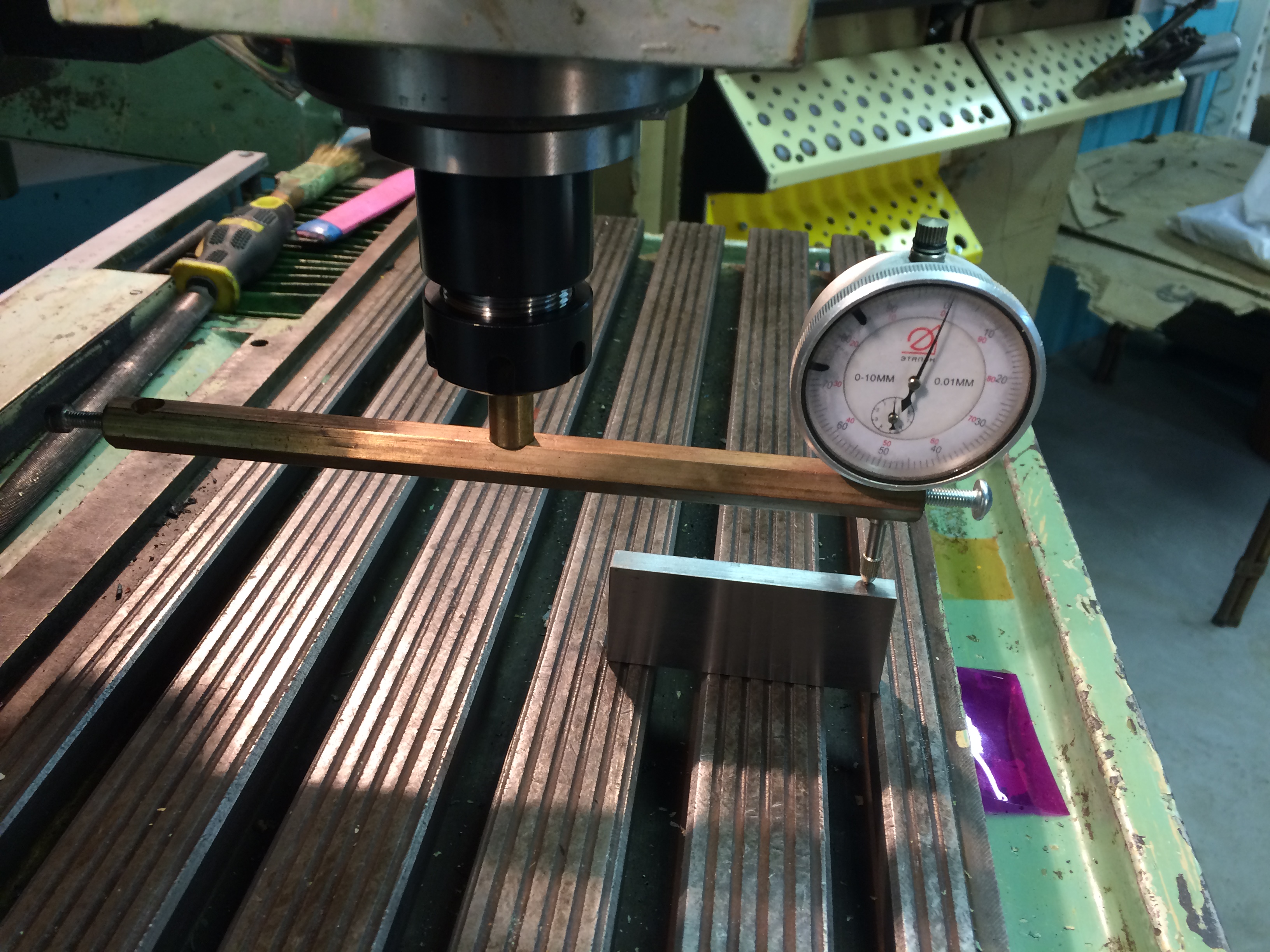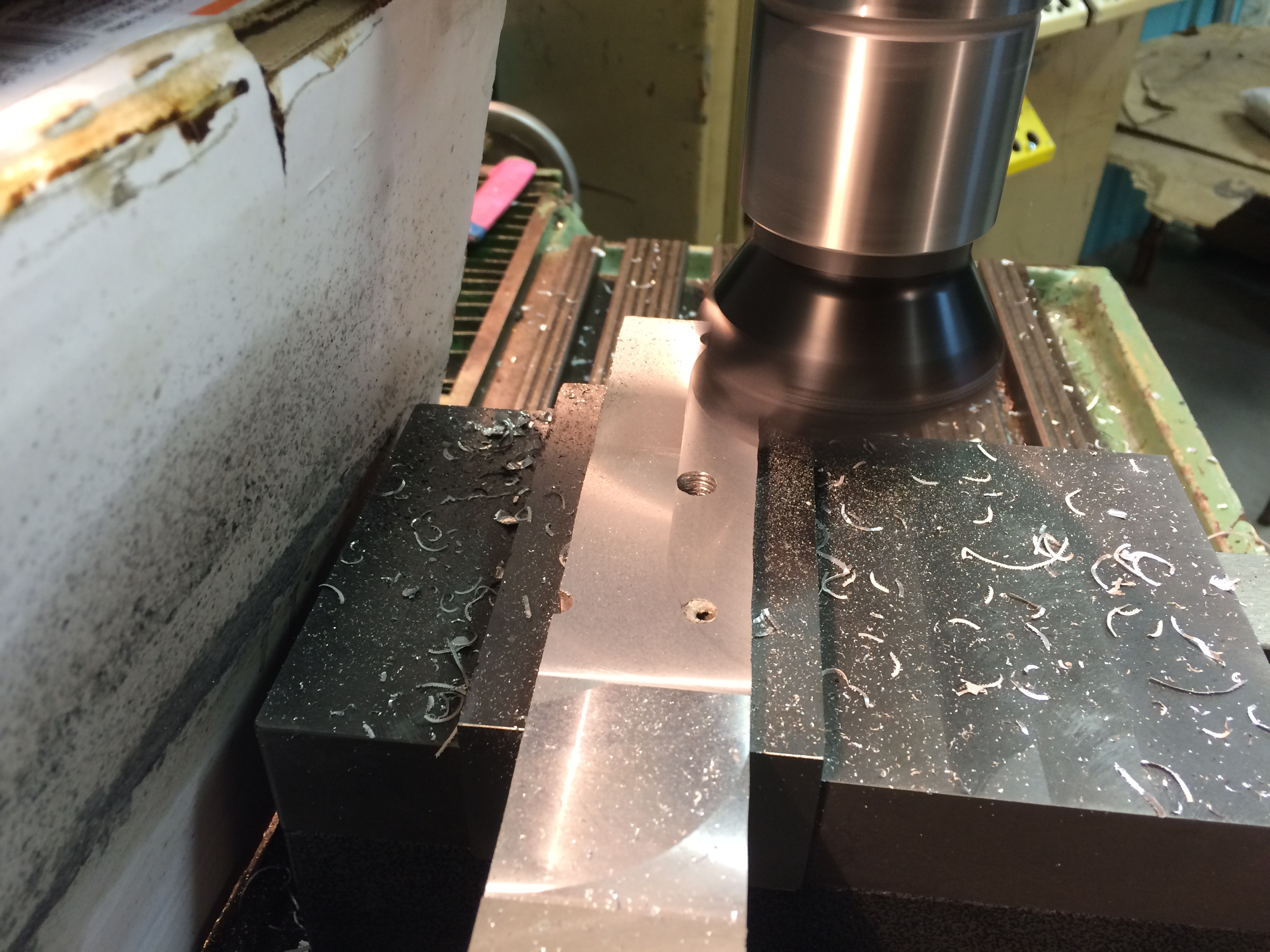 Далее прогнал плоскость торцевой фрезой диаметром 80мм, в результате напахал канав видимые глазу и слегка ощутимых на ноготь...... наспех сделанная "балеринка " с плечом 100 мм показала отклонение вертикальности шпинделя относительно стола . В плоскости Х Z поправить вертикальность не составило труда, а вот плоскость У Z взятию нахрапом не поддалась , завтра буду снимать ВФГ, для поглядеть на случайно попавший мусор ,ну или калиброванные прокладки буду вставлять между ВФГ и балкой............