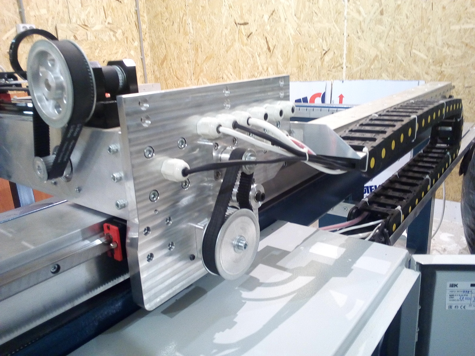 Вроде мелочи, а времени отнимают прилично... Кроме того, установил наконец станок на его постоянное место жительства, провел к нему питающий кабель и подключил. Поковырялся слегка в настройках, после чего смог пошевелить осями. 500 мм/с бегает, можно и быстрее, но начинают вибрировать трубки, передающие момент от движка на портале - они (трубки) выдавлены хреново, оси внутренней и наружней окружности не совпадают.