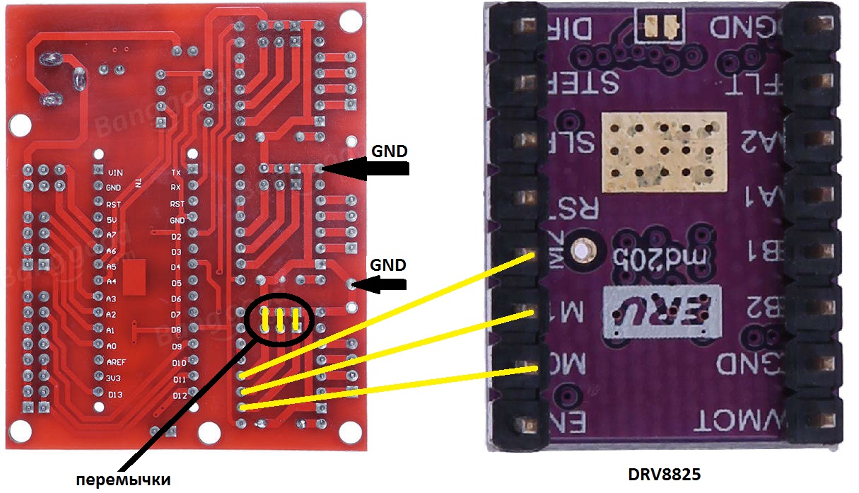 И перемычки делителя шага тоже подключаются на минус. Так что ставь перемычки или не ставь, двигатель будет работать в полношаговом режиме.